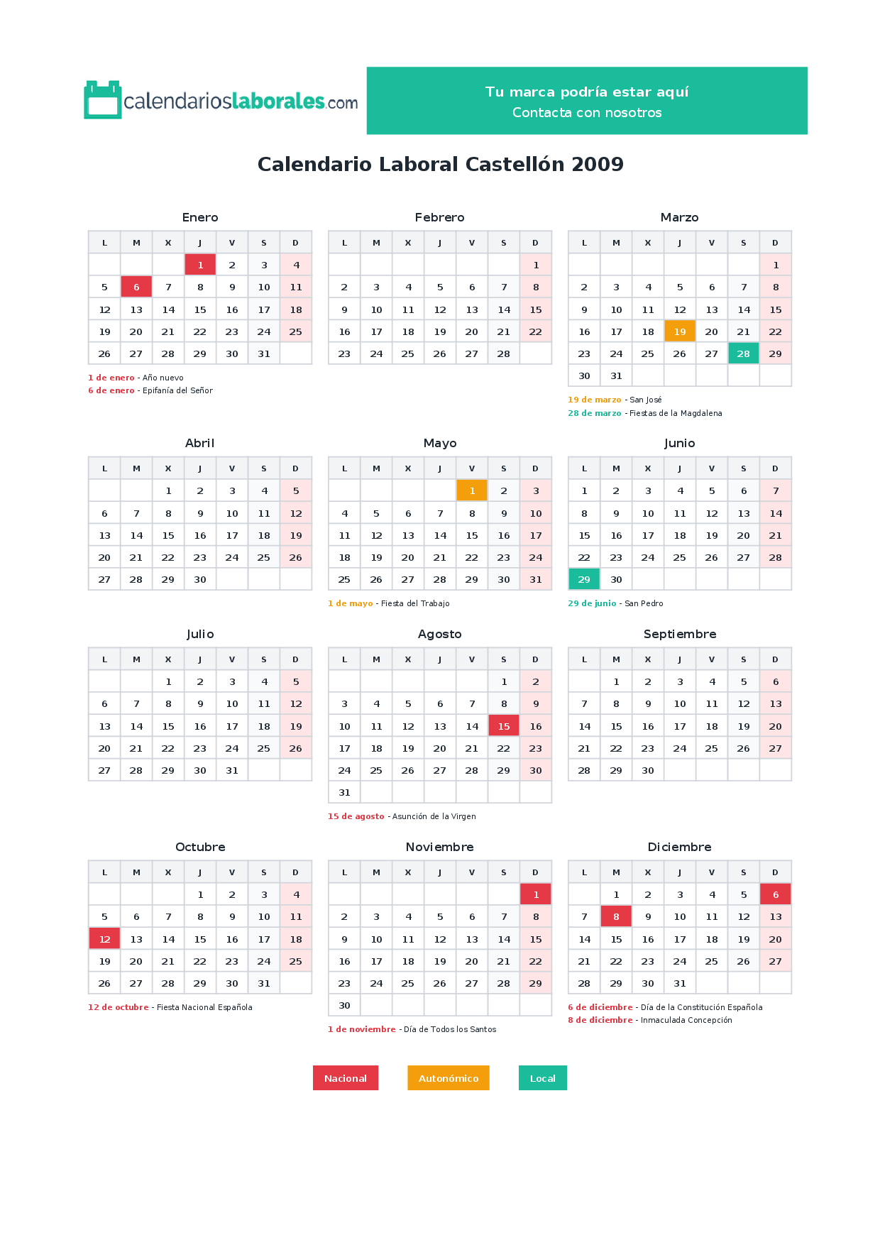 Calendario laboral Castellón 2009