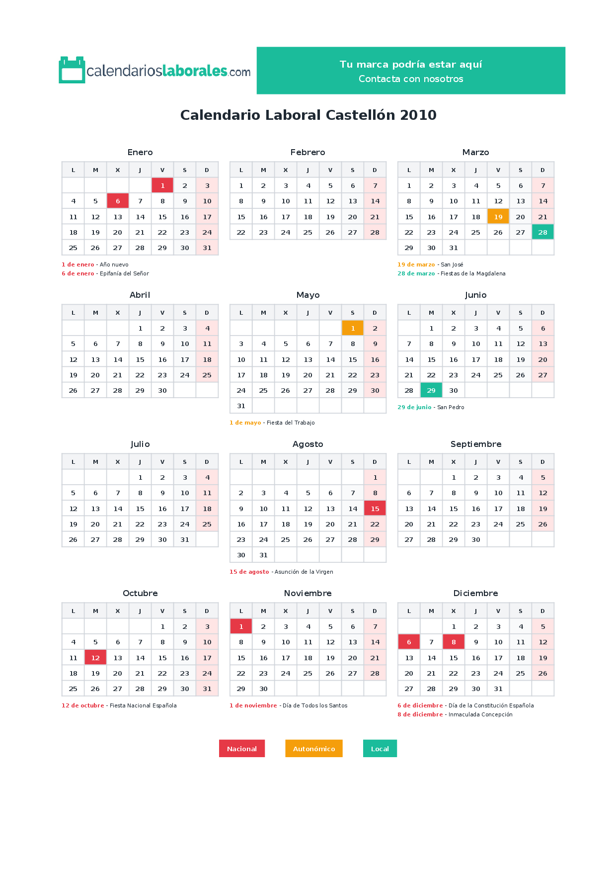 Calendario laboral Castellón 2010
