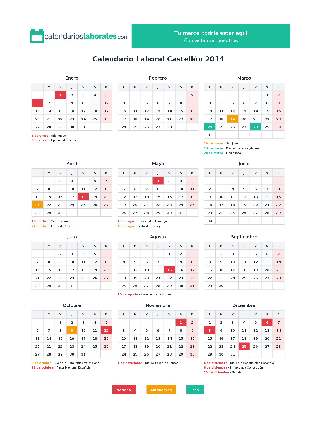 Calendario laboral Castellón 2014