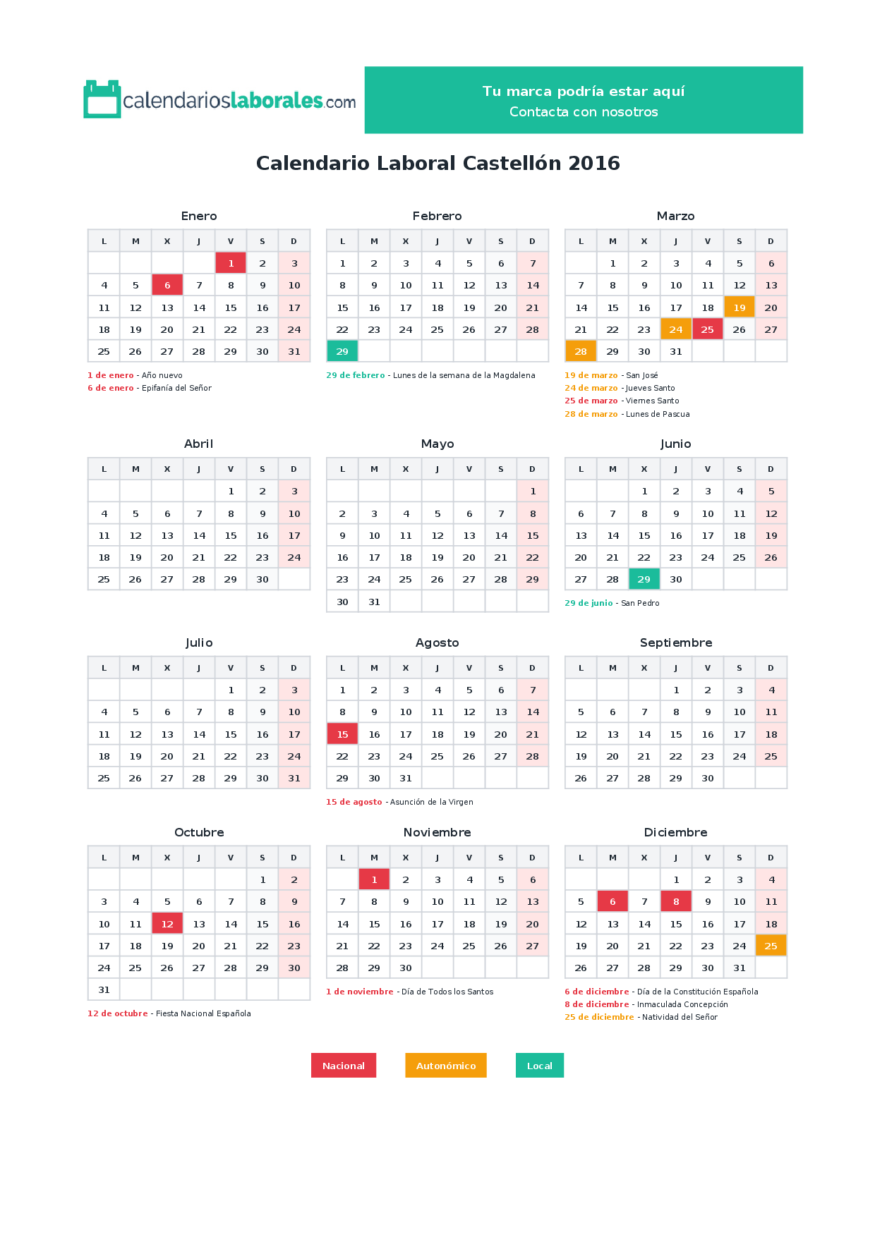Calendario laboral Castellón 2016