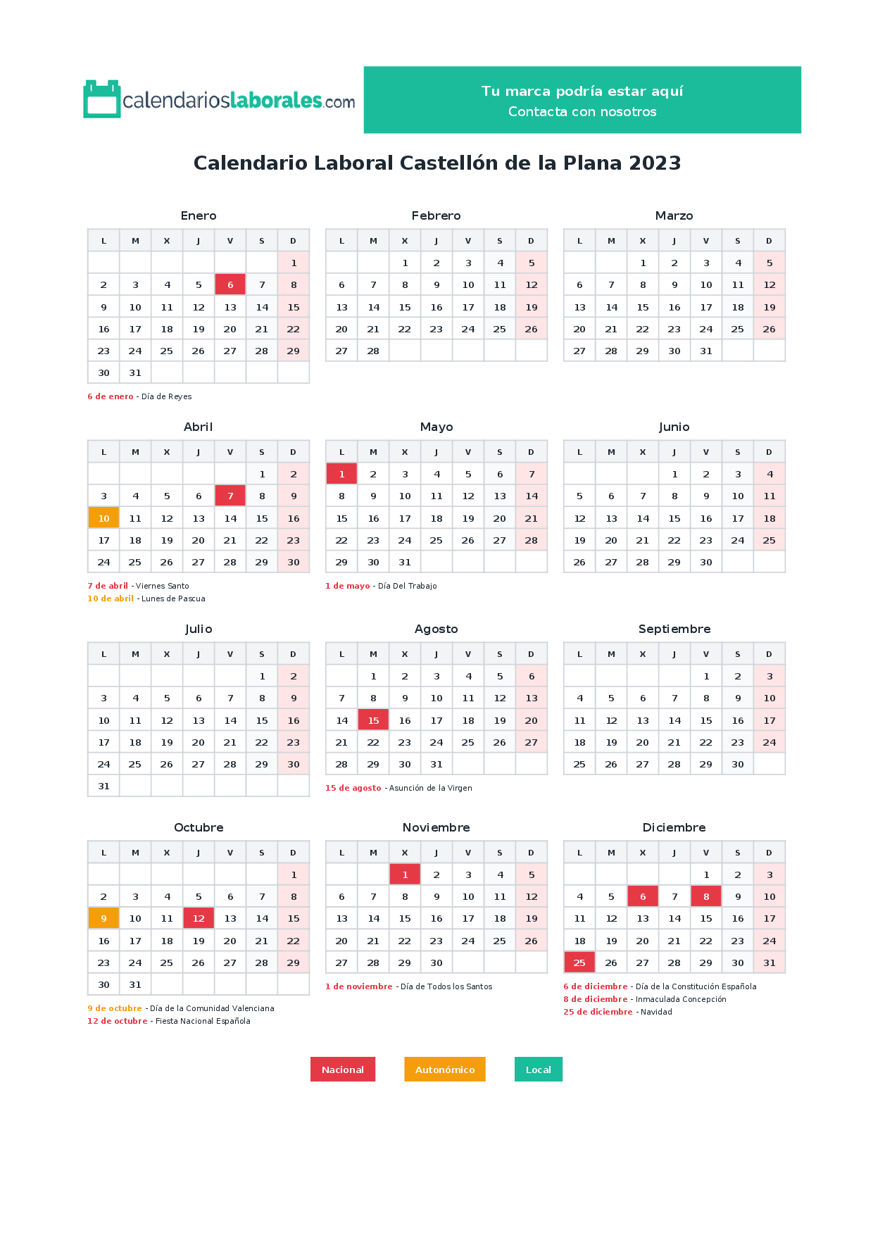Puedes consultar también el calendario laboral de Castellón o el calendario autonómico de Comunidad Valenciana para más información.