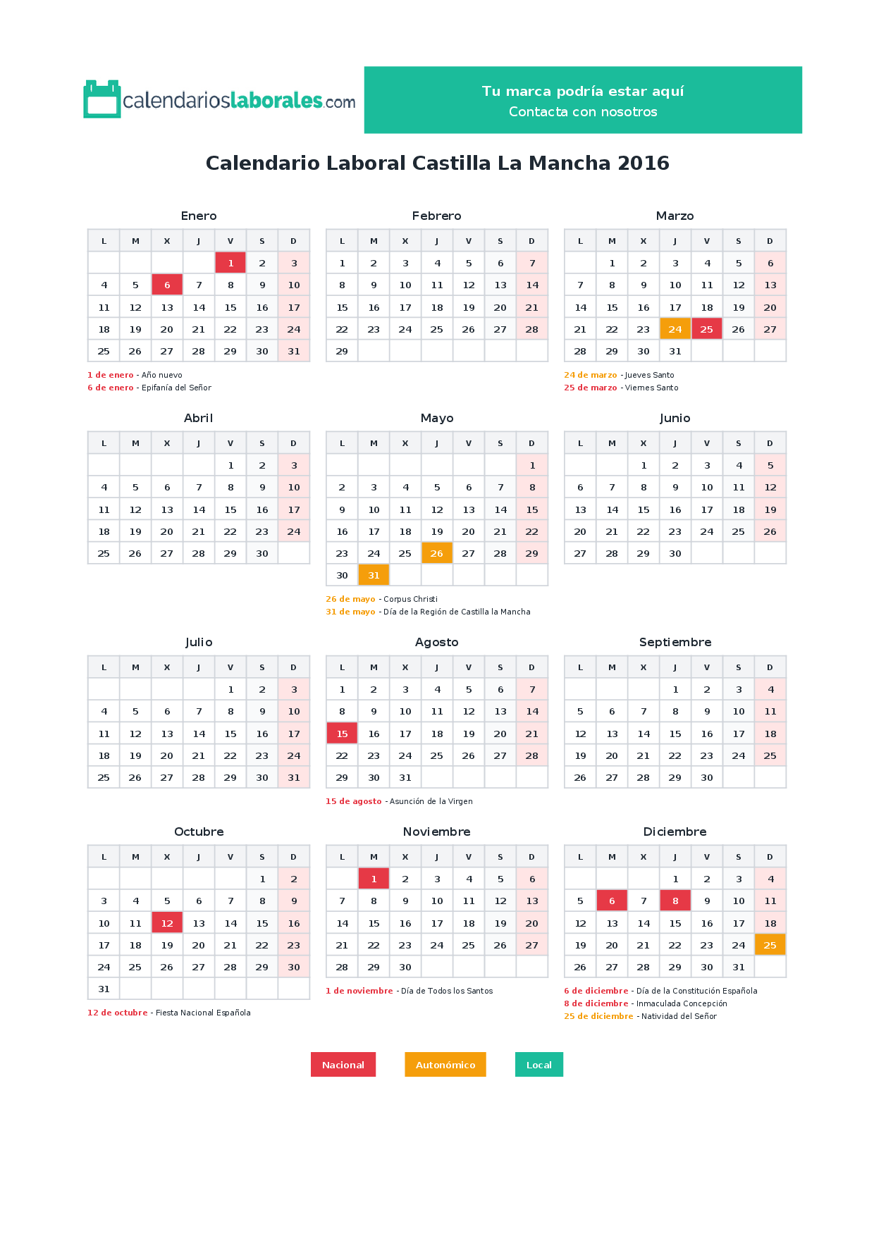 Calendario laboral Castilla La Mancha 2016