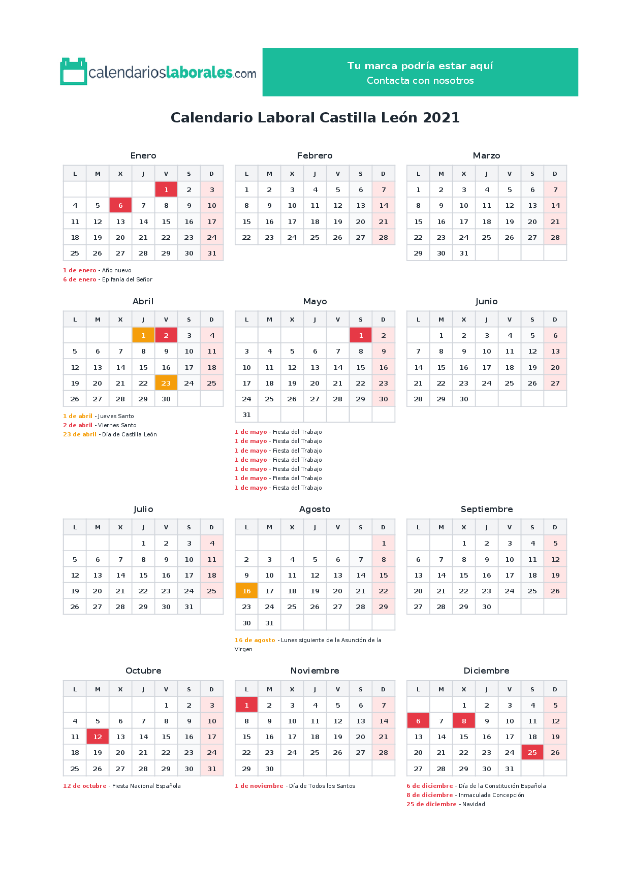 Calendario laboral Castilla León 2021
