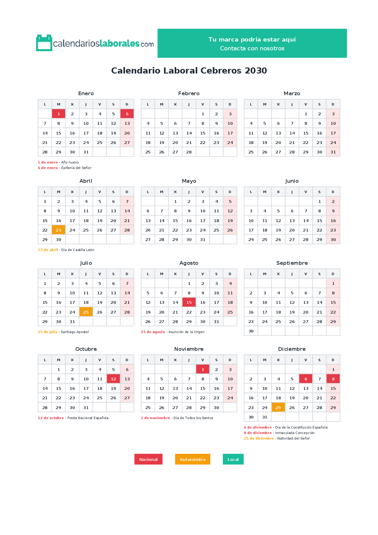 Calendario laboral Cebreros 2030