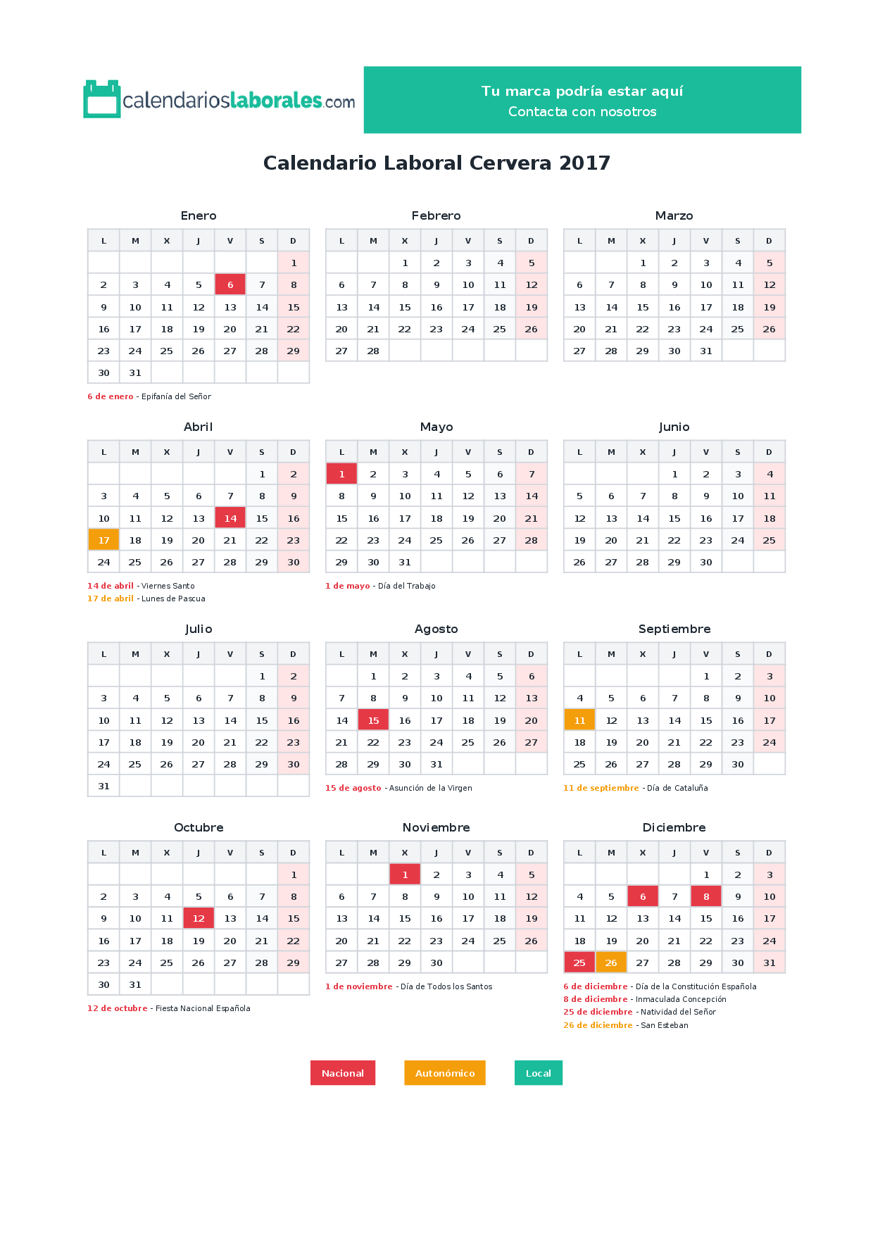 Calendario laboral Cervera 2017