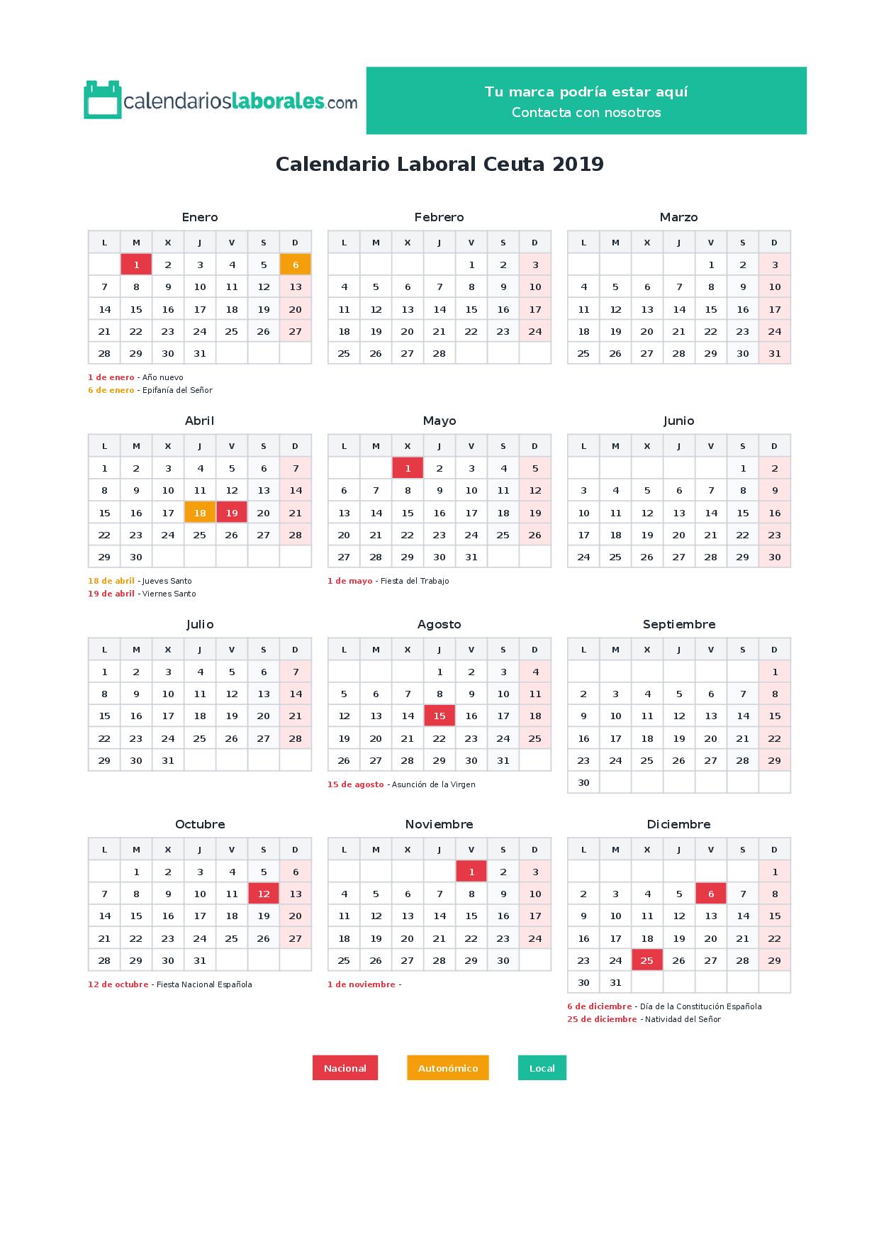Calendario laboral Ceuta 2019