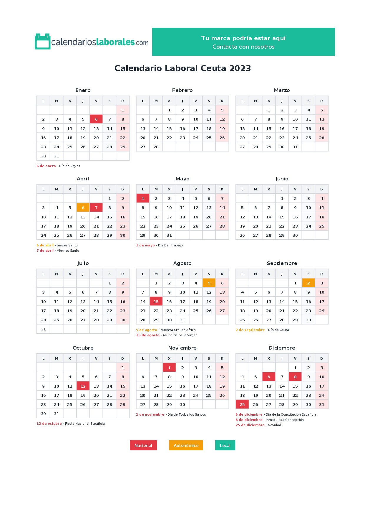 Calendario laboral Ceuta 2023
