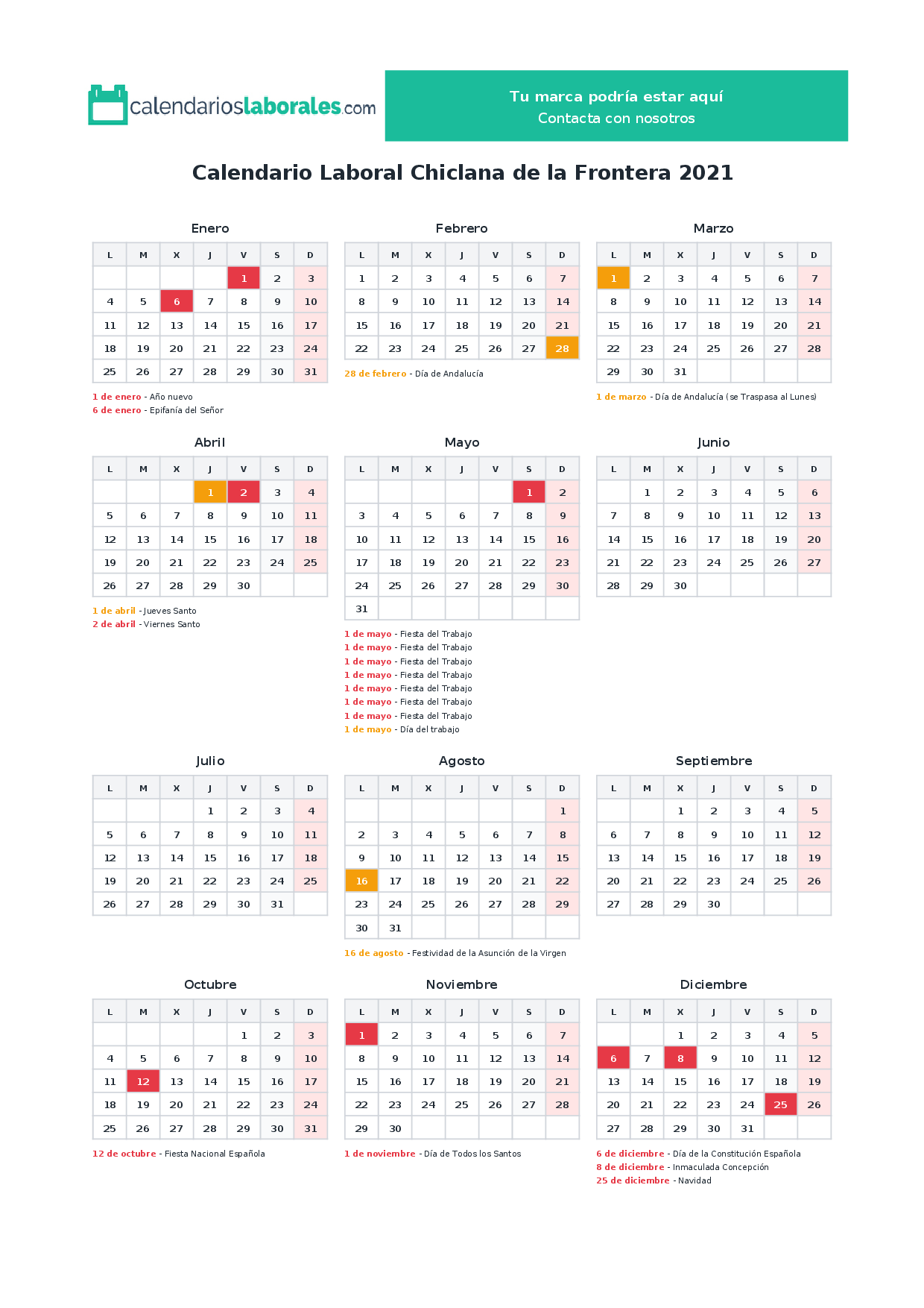 Puedes consultar también el calendario laboral de Cádiz o el calendario autonómico de Andalucía para más información.