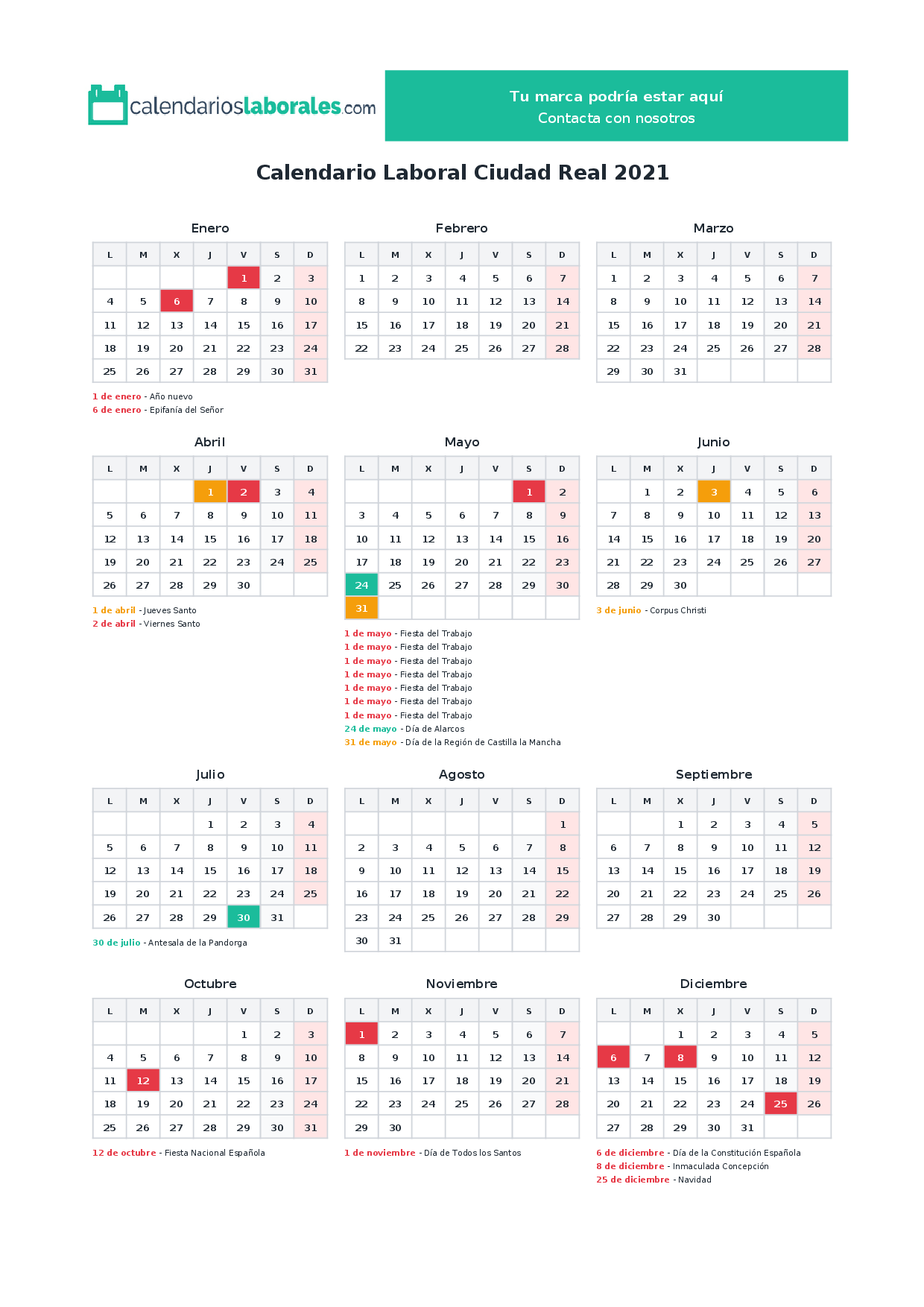 Calendario laboral Ciudad Real 2021