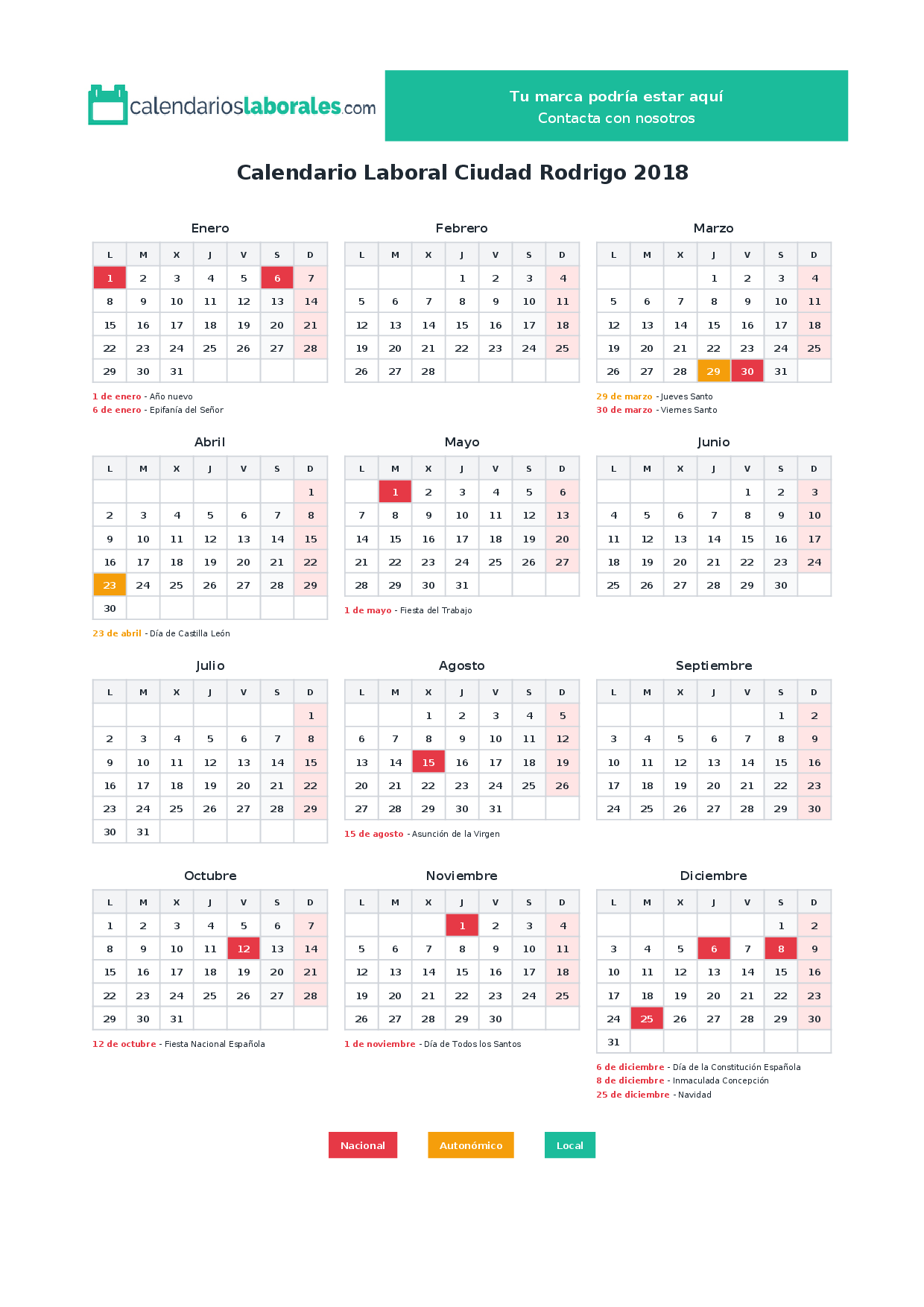 Calendario laboral Ciudad Rodrigo 2018