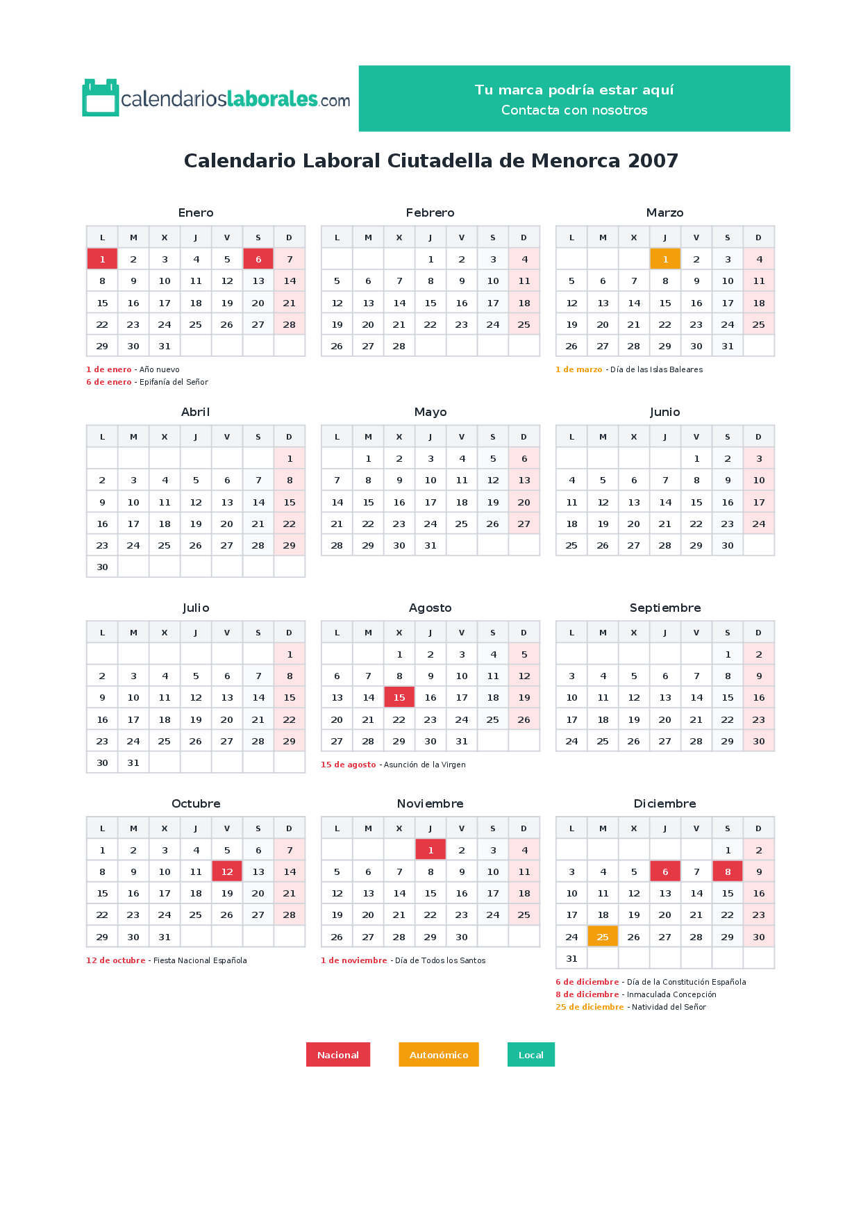 Calendario laboral Ciutadella de Menorca 2007