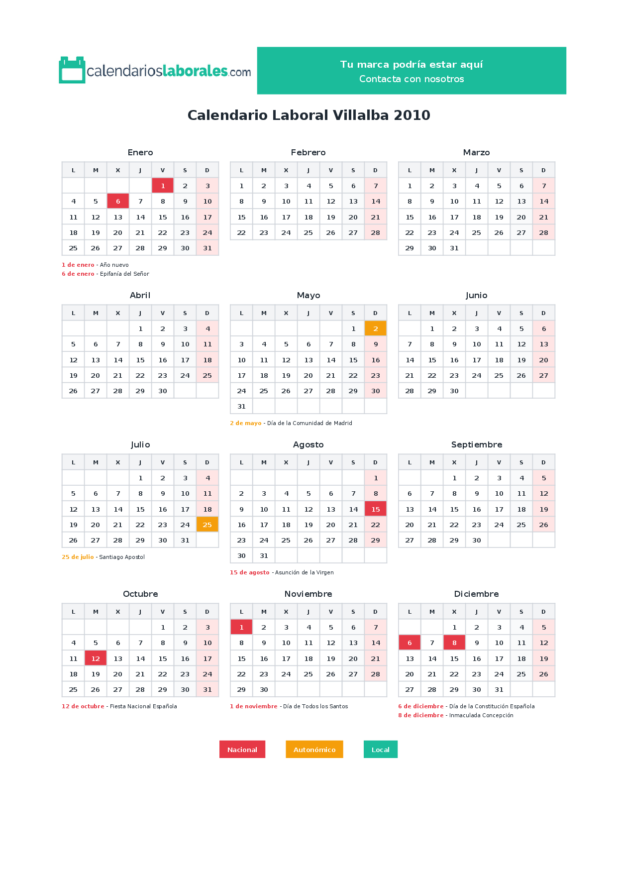 Calendario laboral Villalba 2010