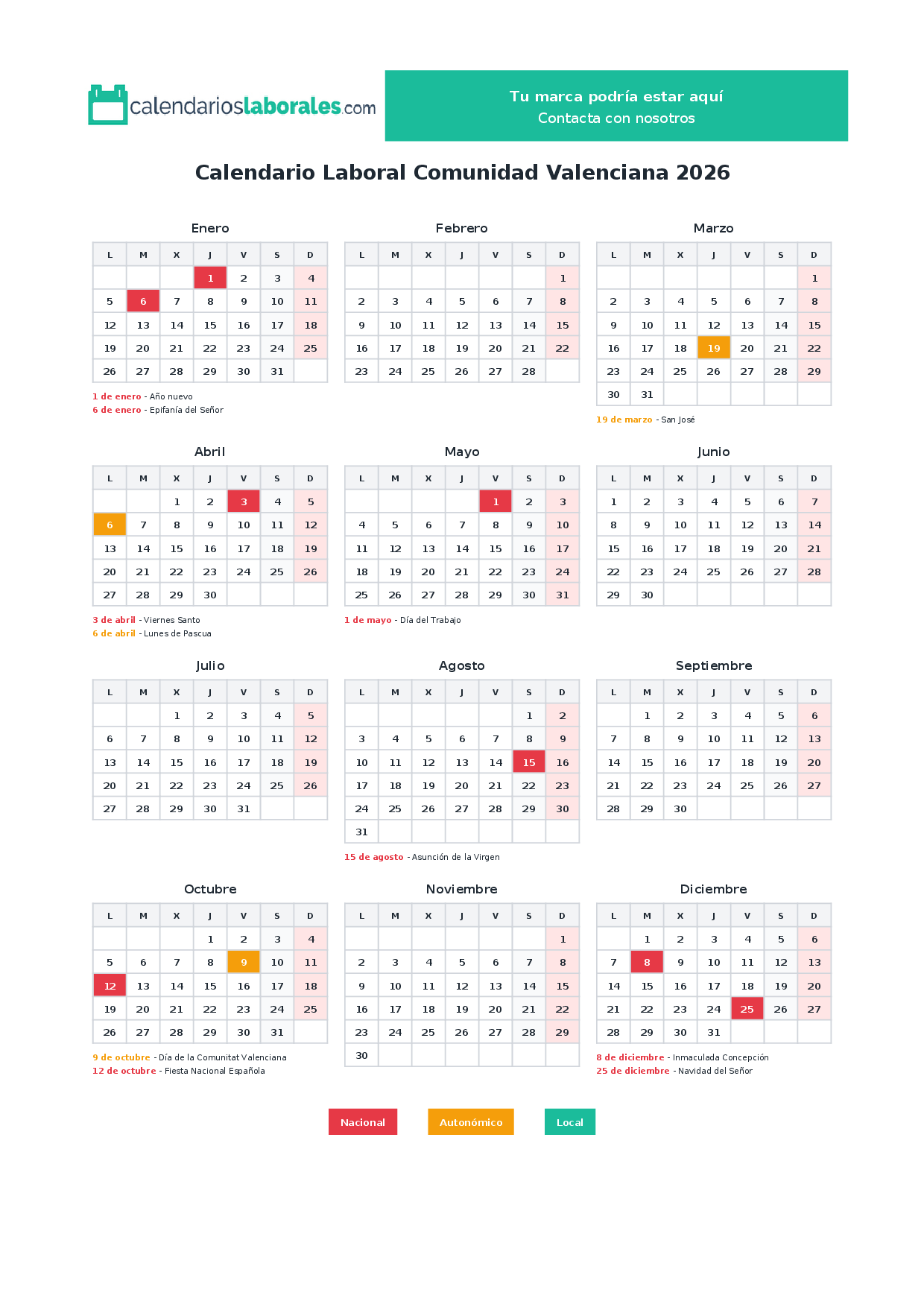Calendario laboral Comunidad Valenciana 2026