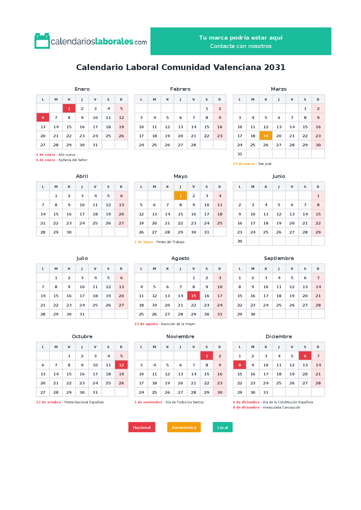 Preguntas frecuentes sobre el calendario laboral de Comunidad Valenciana 2031