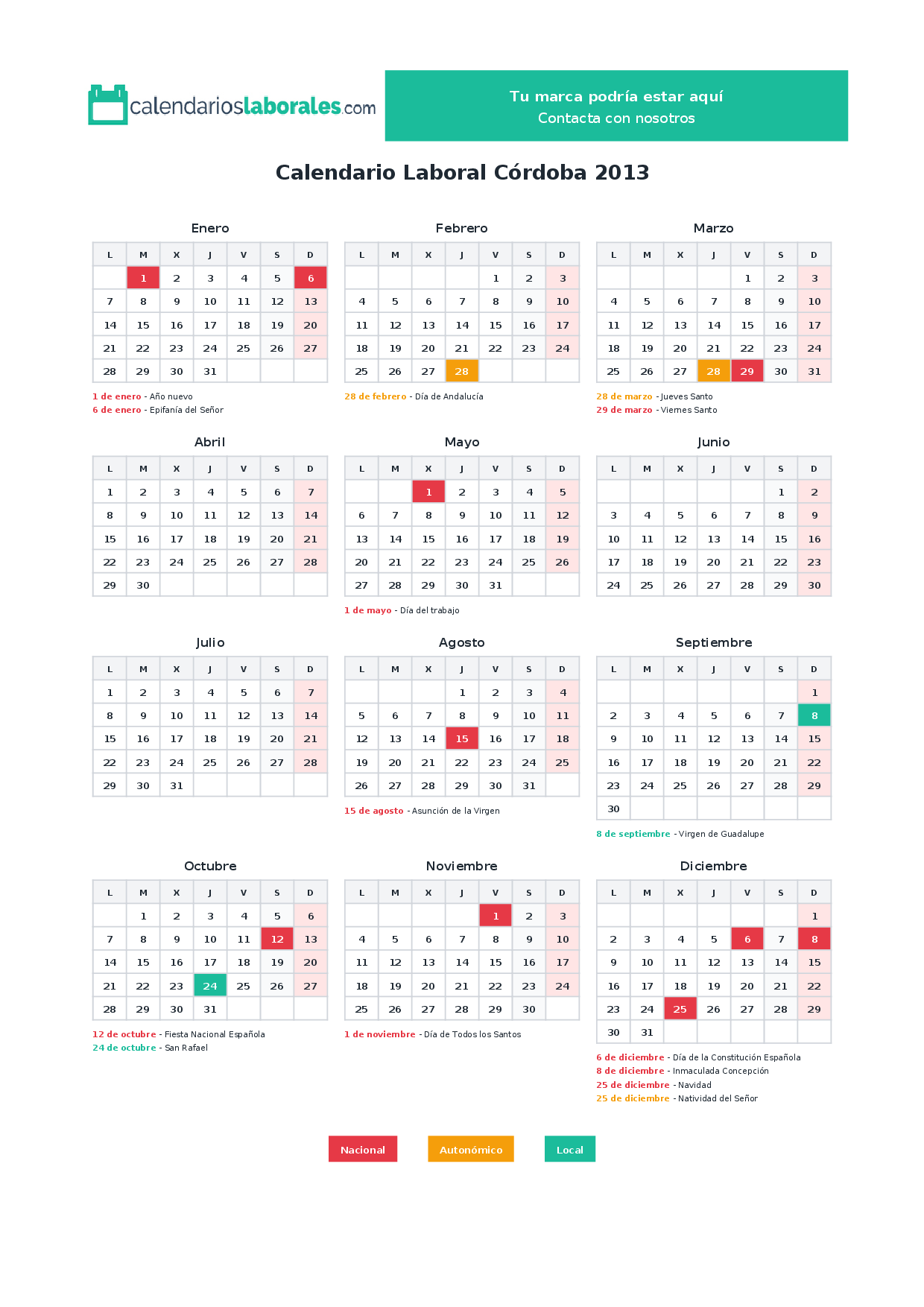 Calendario laboral Córdoba 2013