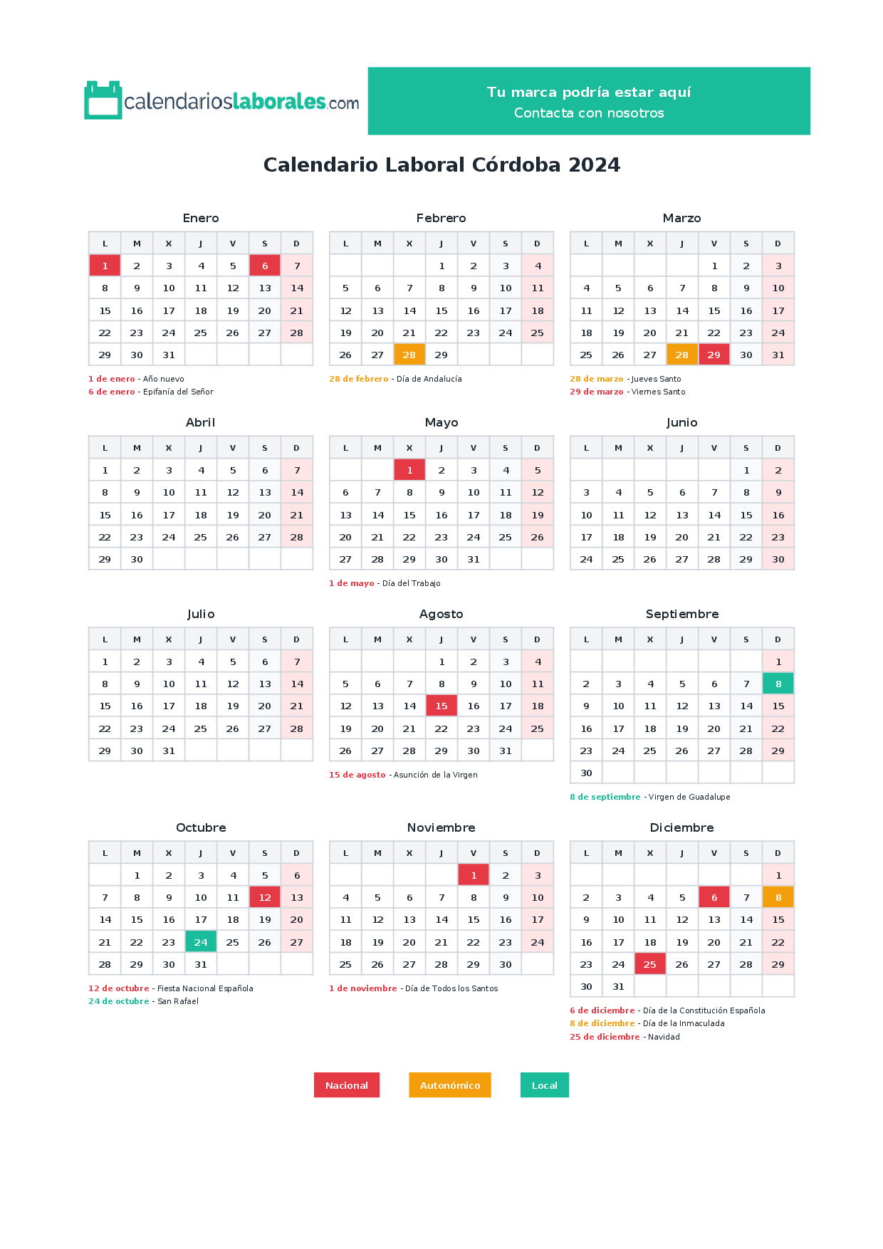 Calendario laboral Córdoba 2024
