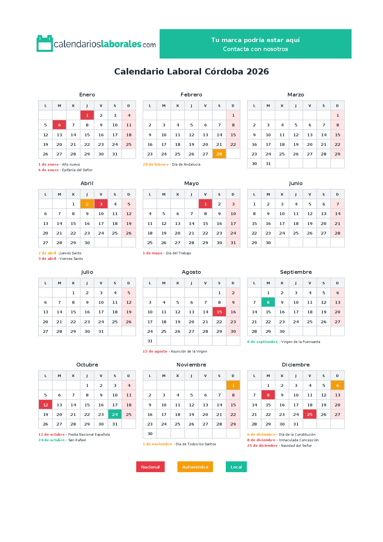 Calendario laboral Córdoba 2026