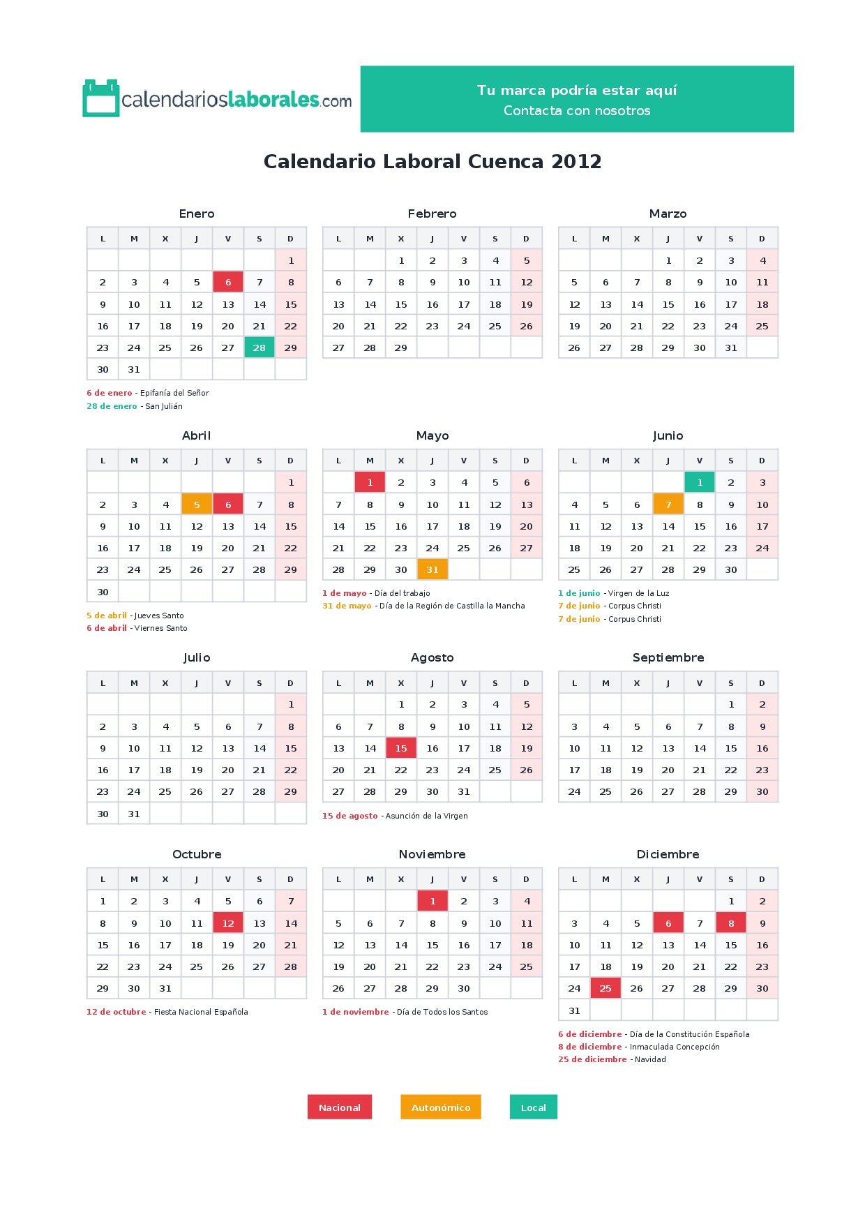 Calendario laboral Cuenca 2012