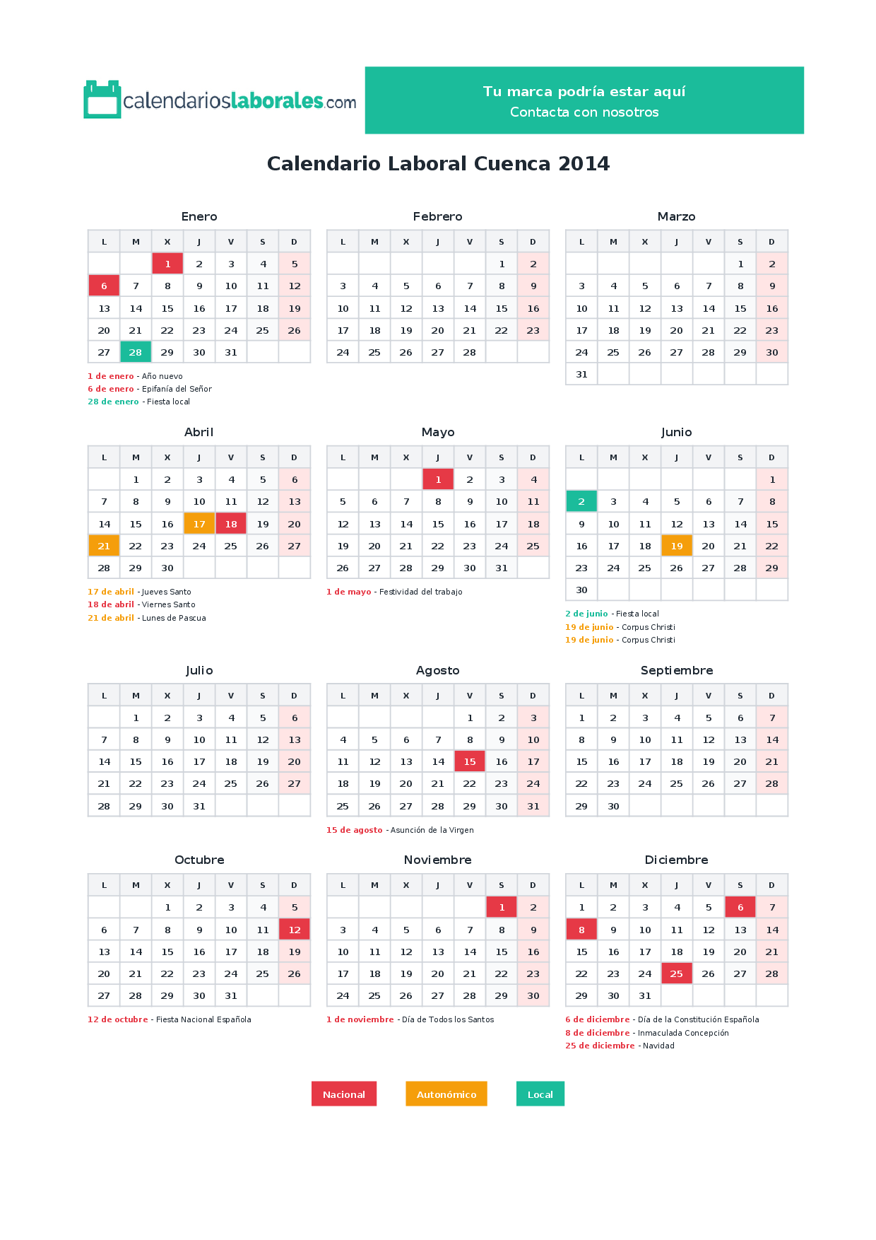 Calendario laboral Cuenca 2014