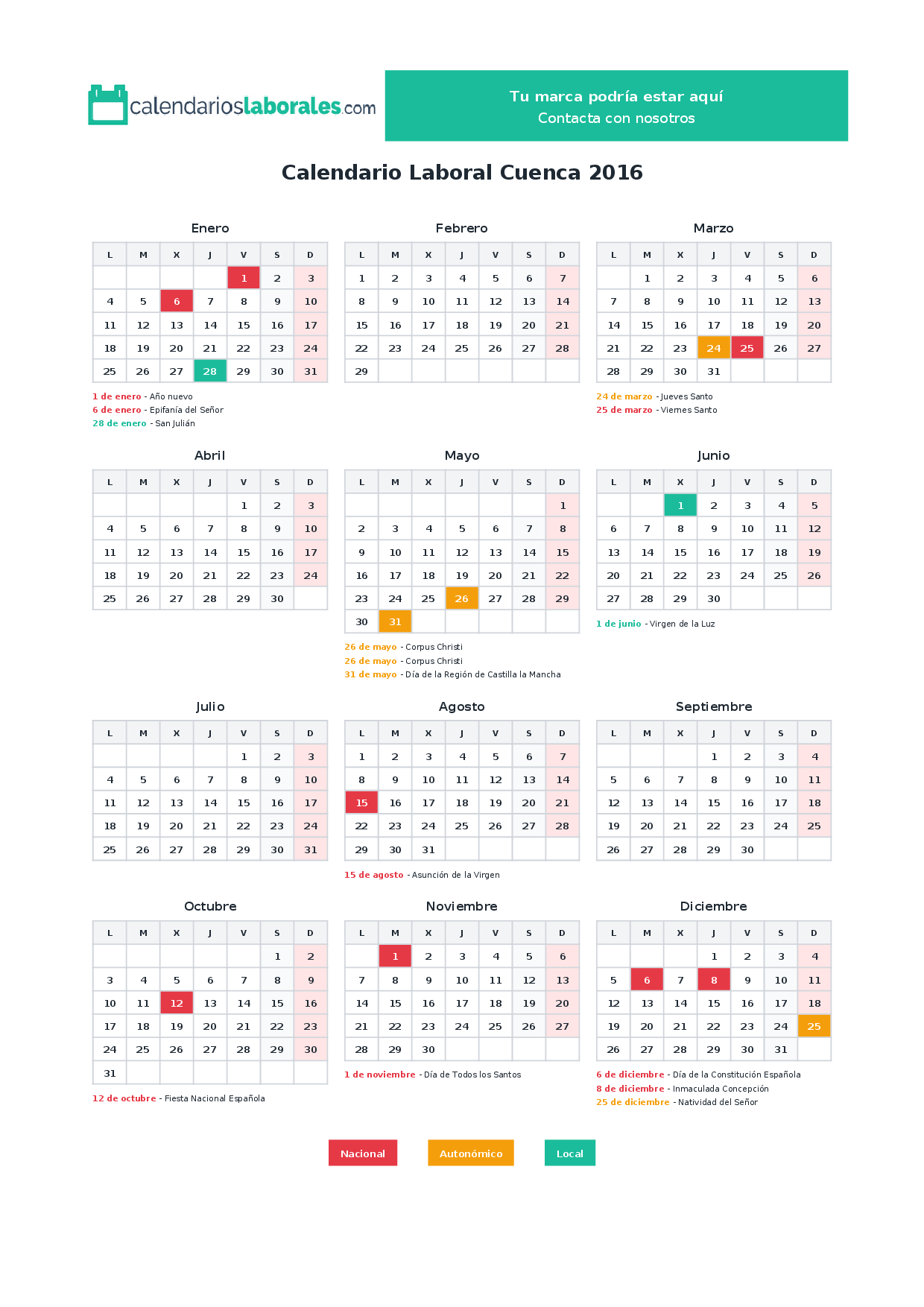 Calendario laboral Cuenca 2016