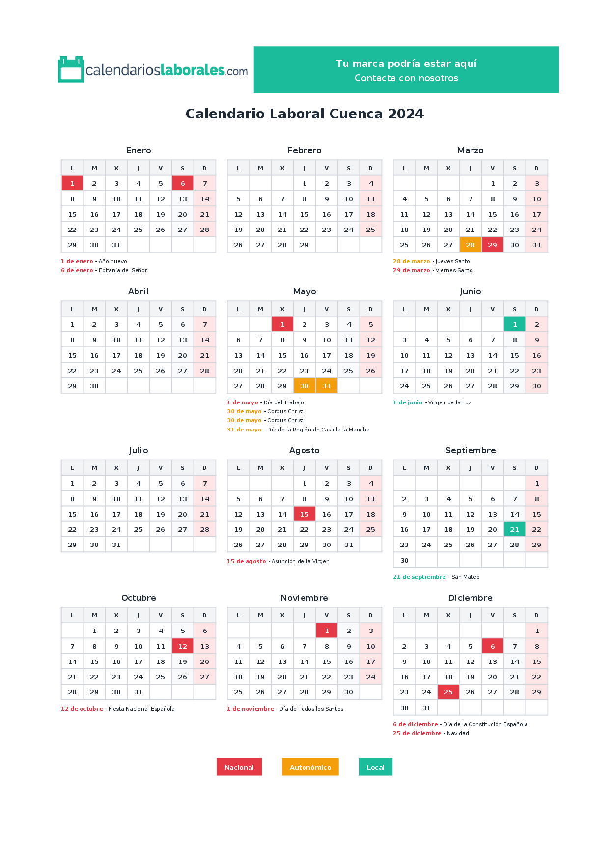 Calendario laboral Cuenca 2024