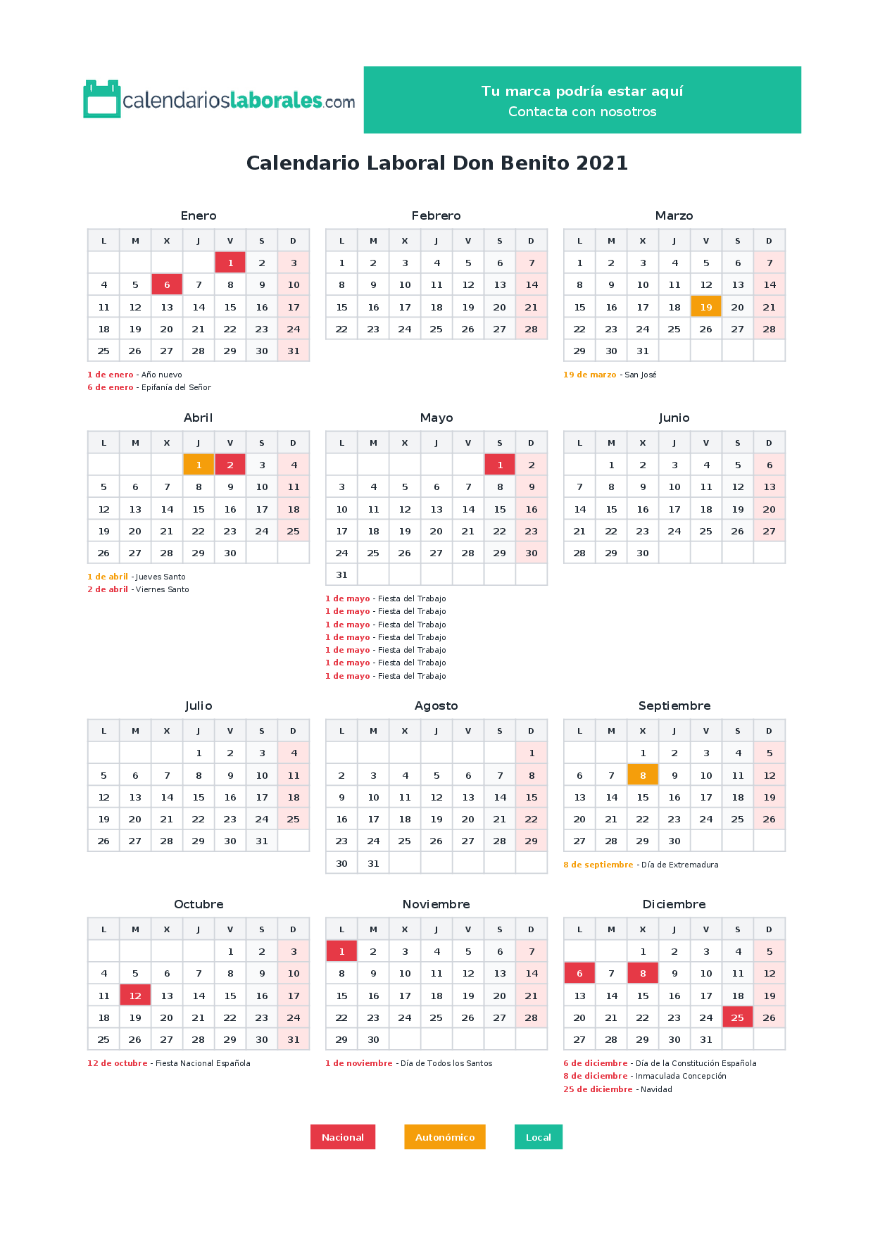 Calendario laboral Don Benito 2021