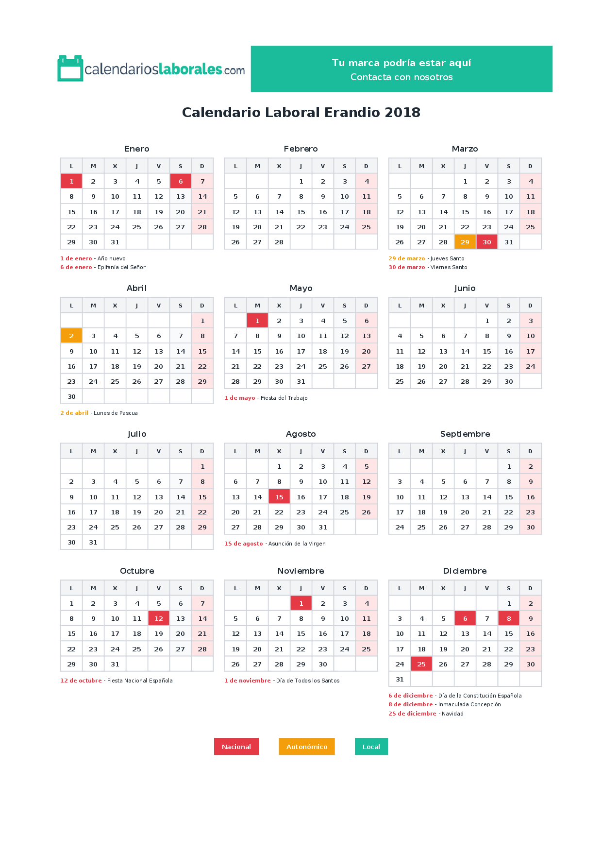 Calendario laboral Erandio 2018