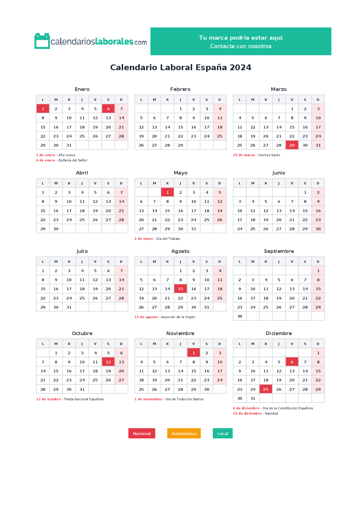 Calendario laboral España 2024