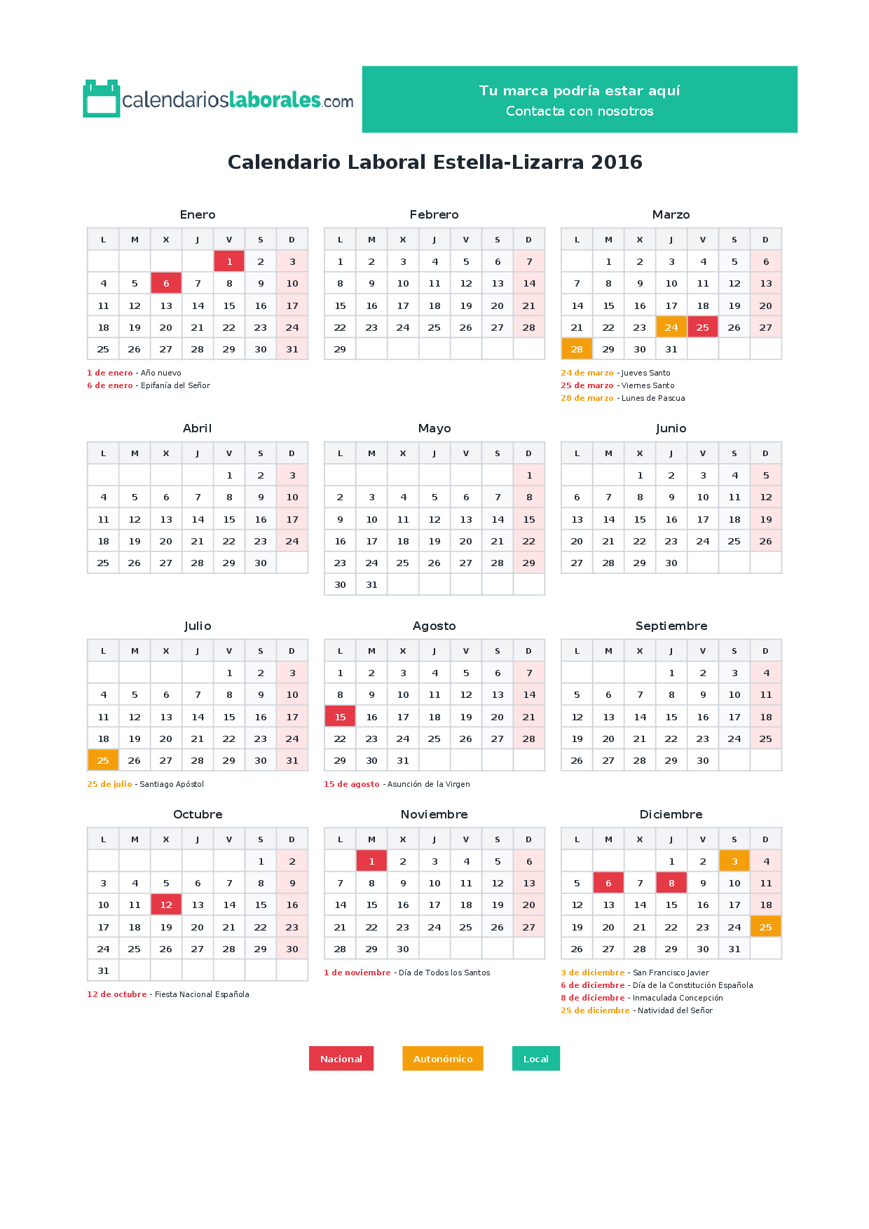 Calendario laboral Estella-Lizarra 2016