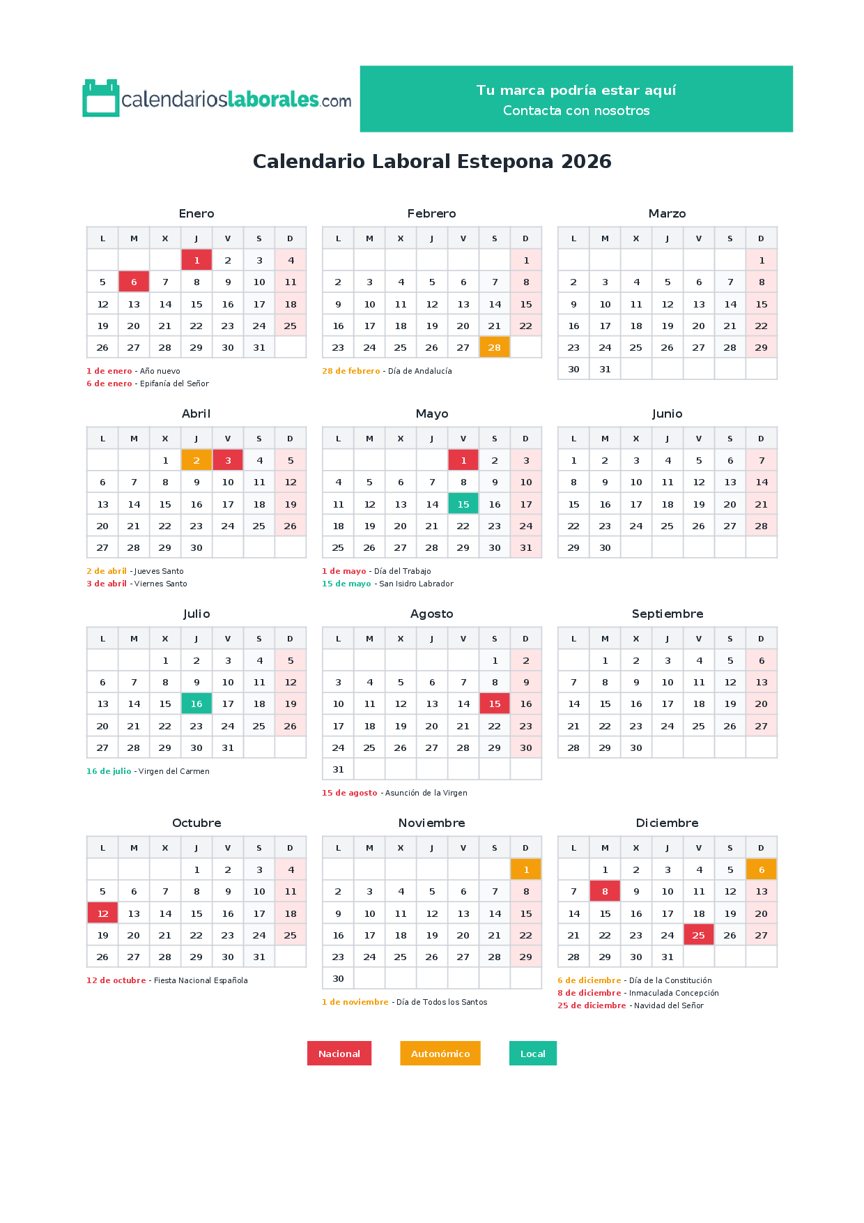 Calendario laboral Estepona 2026