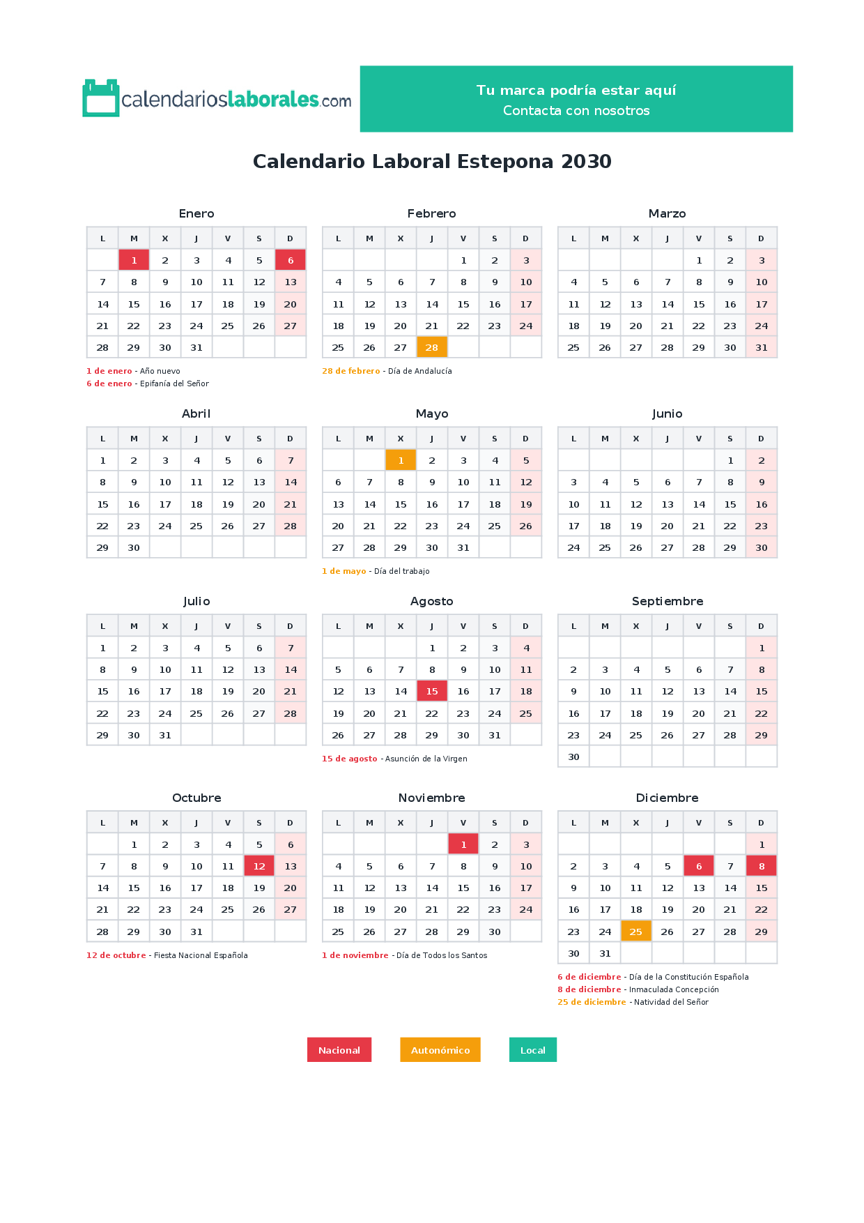 Calendario laboral Estepona 2030