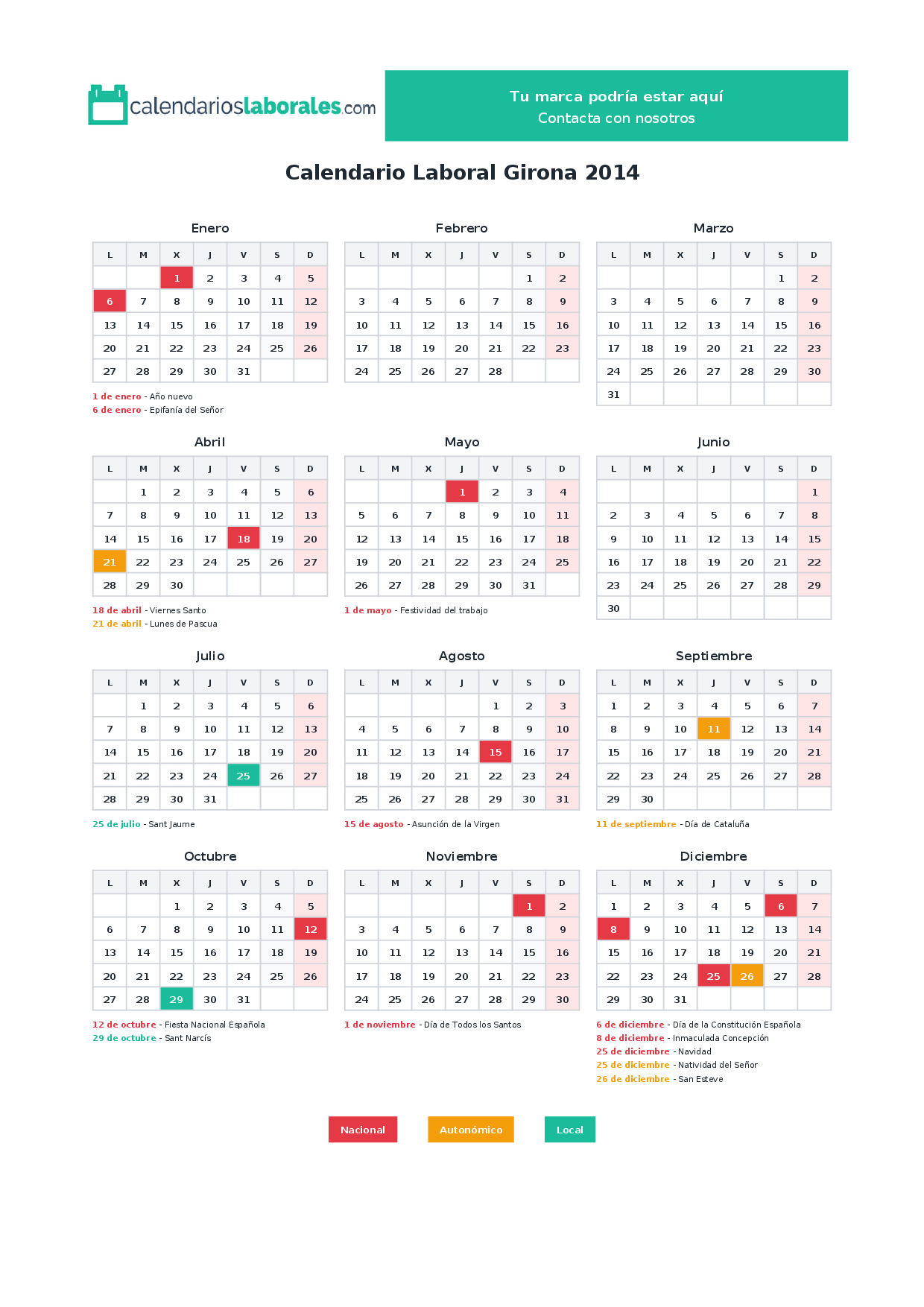 Calendario laboral Girona 2014