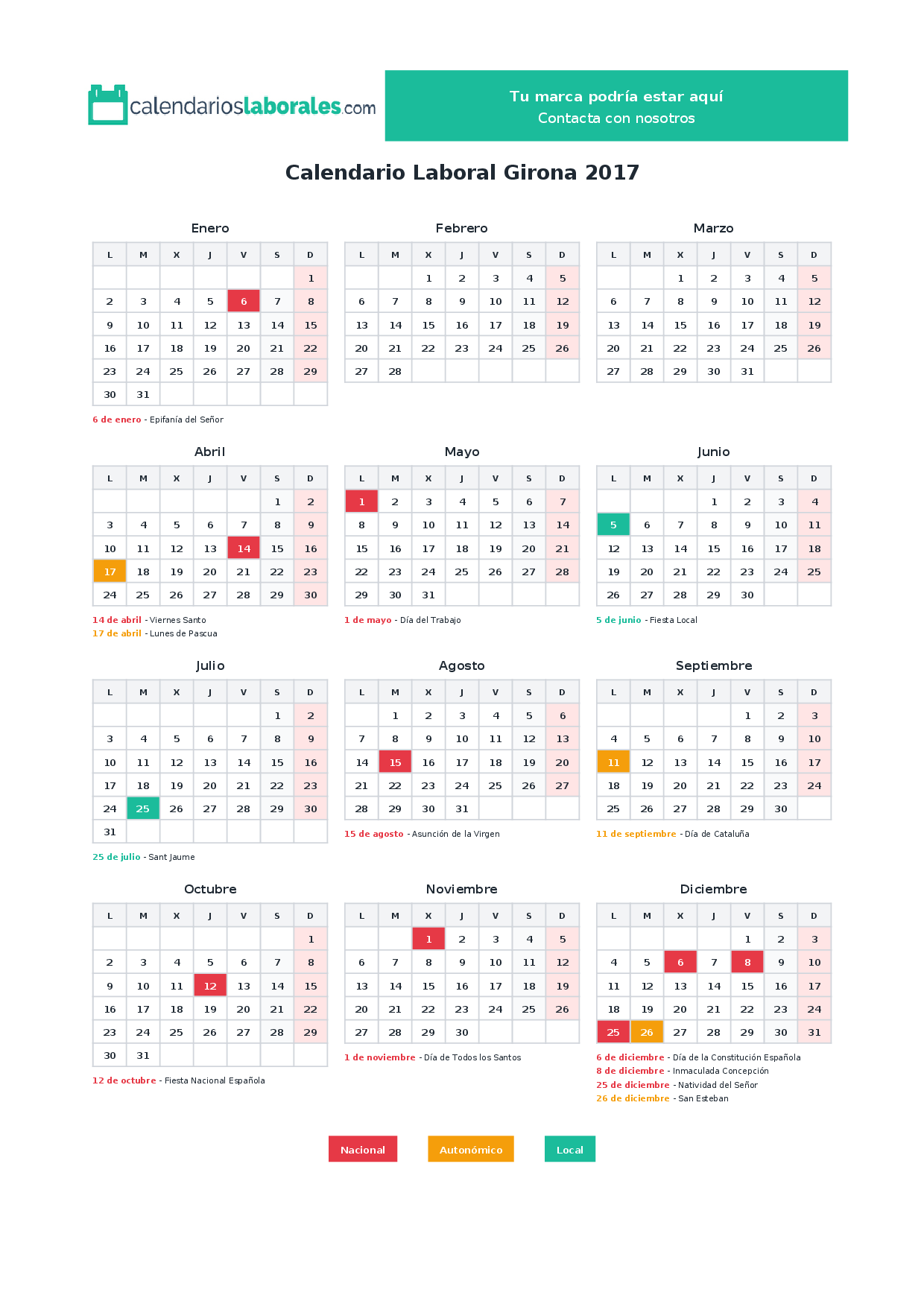 Calendario laboral Girona 2017
