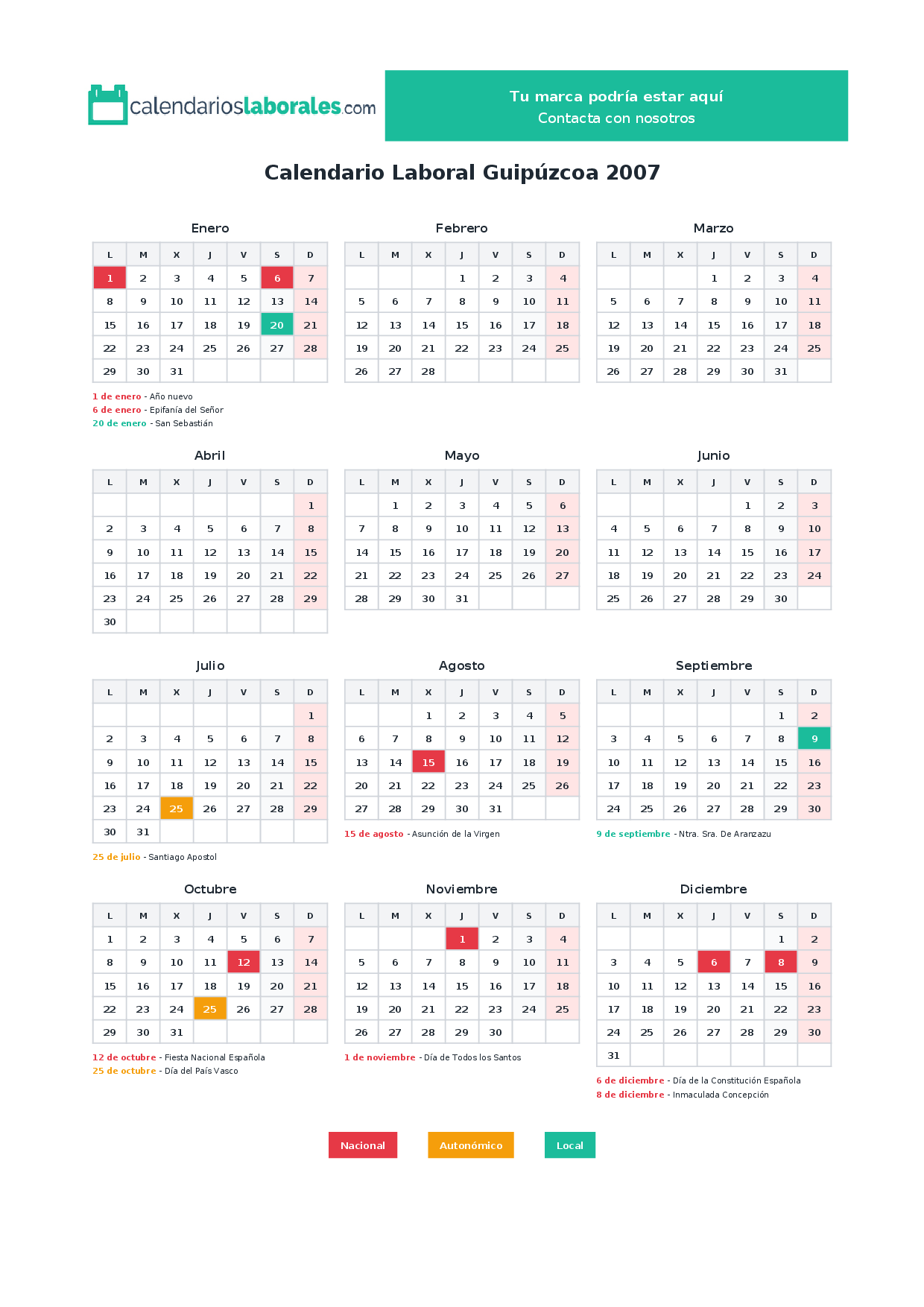 Calendario laboral Guipúzcoa 2007