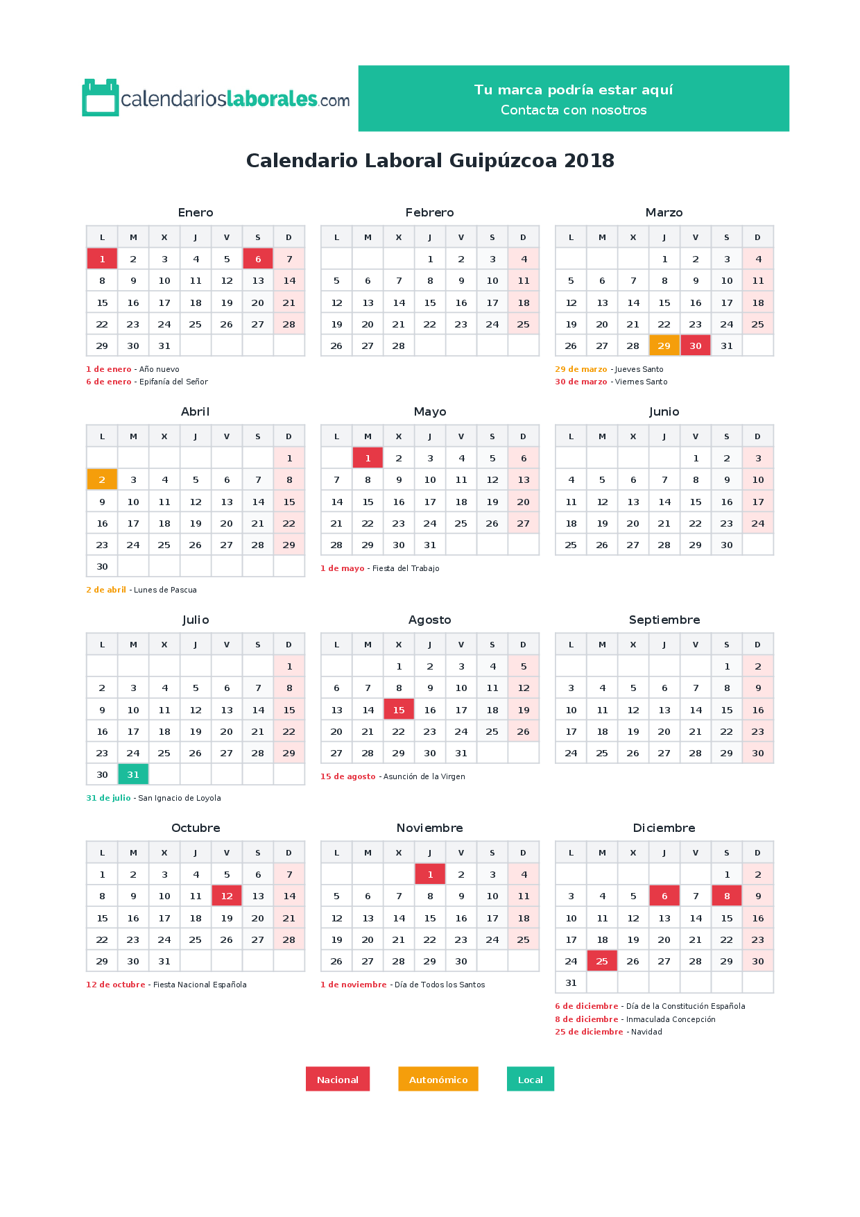 Calendario laboral Guipúzcoa 2018