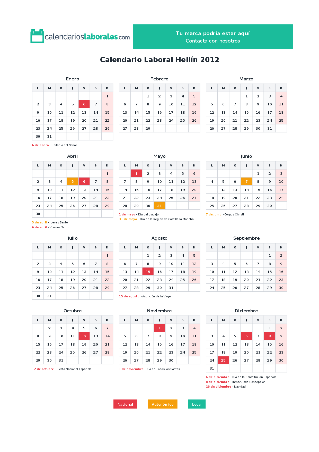 Calendario laboral Hellín 2012