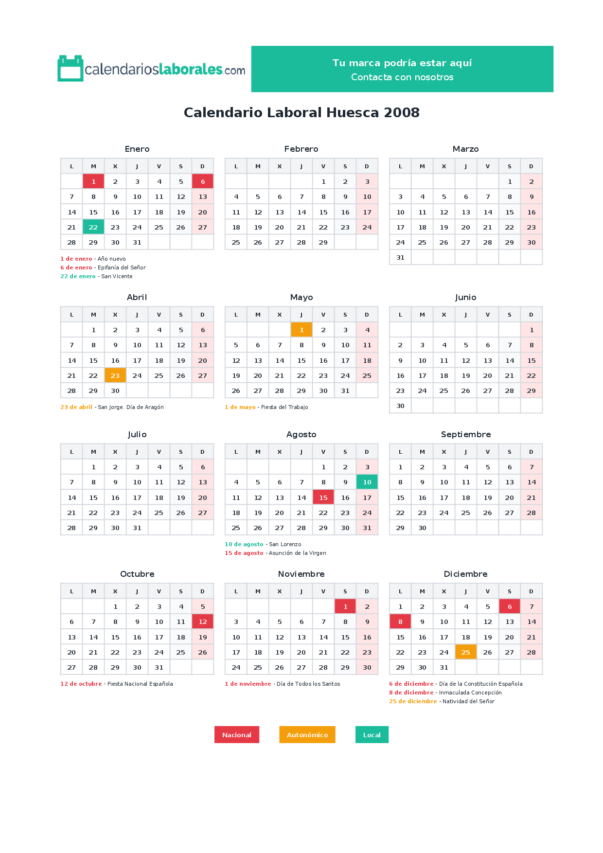 Calendario laboral Huesca 2008