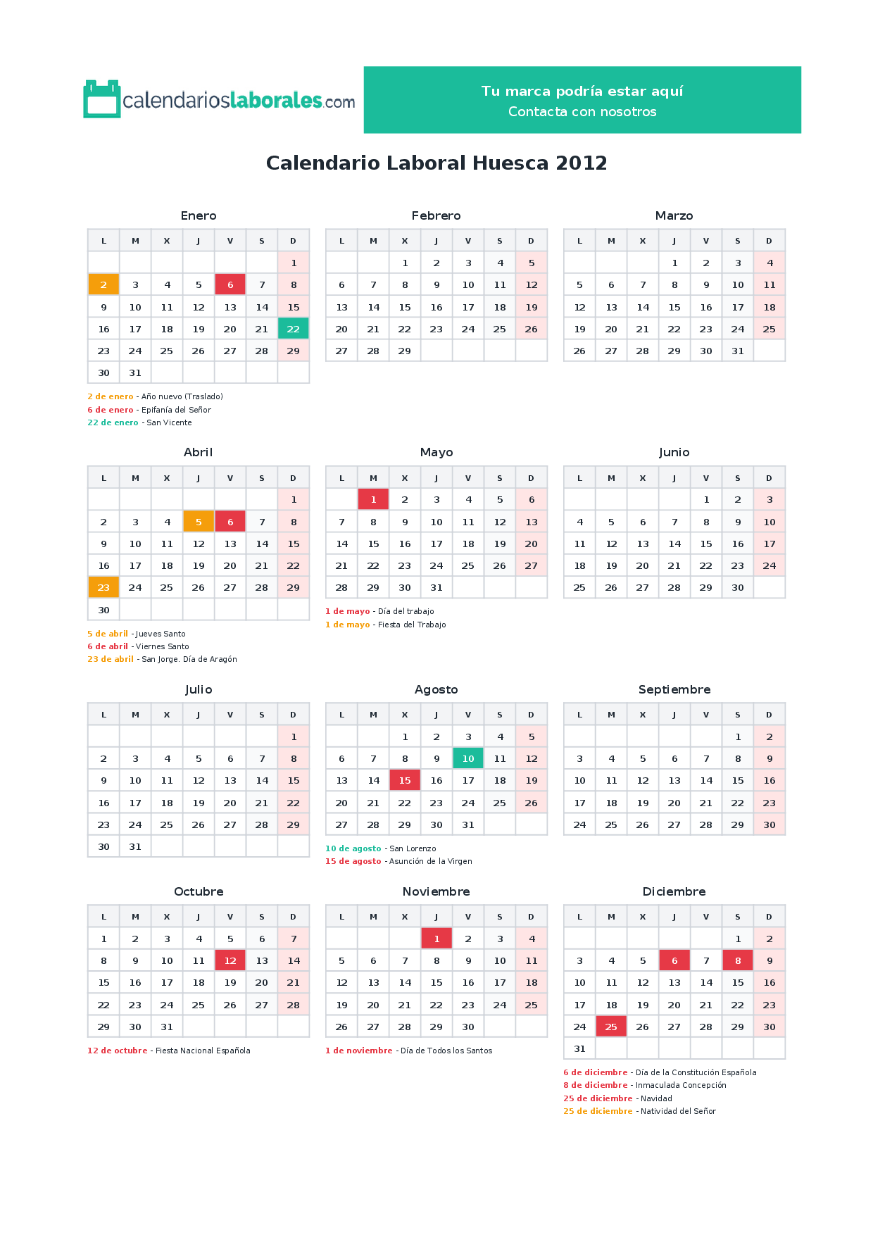 Calendario laboral Huesca 2012