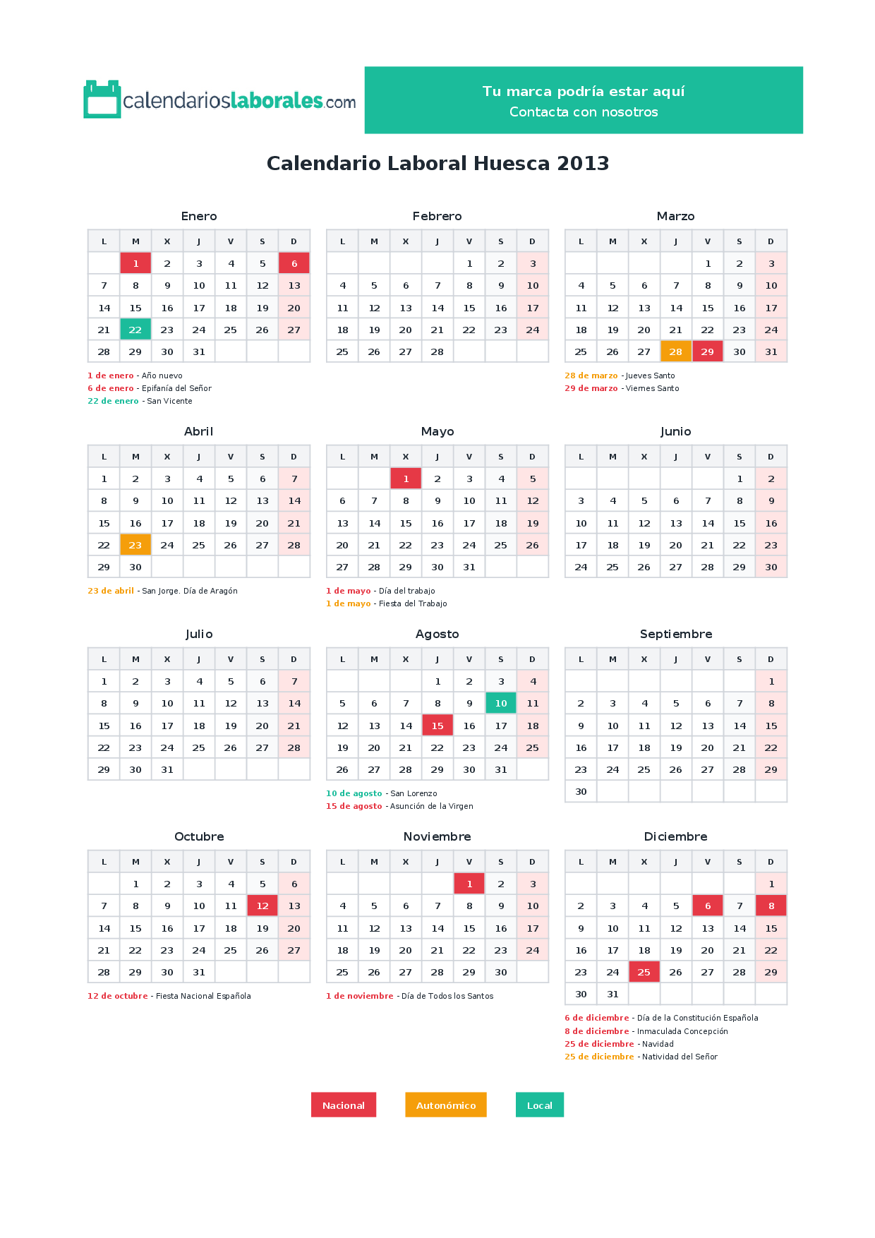 Calendario laboral Huesca 2013