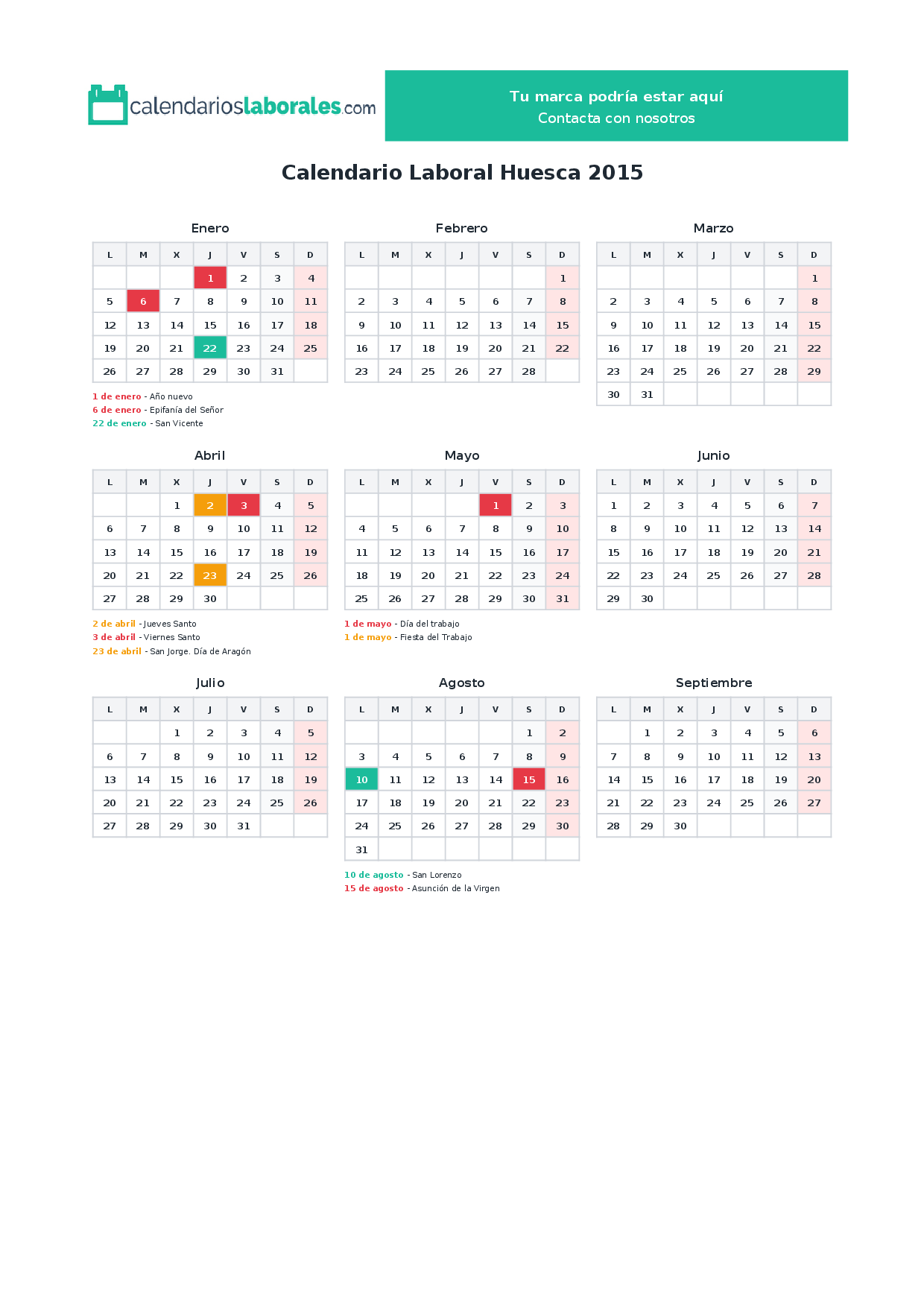 Calendario laboral Huesca 2015