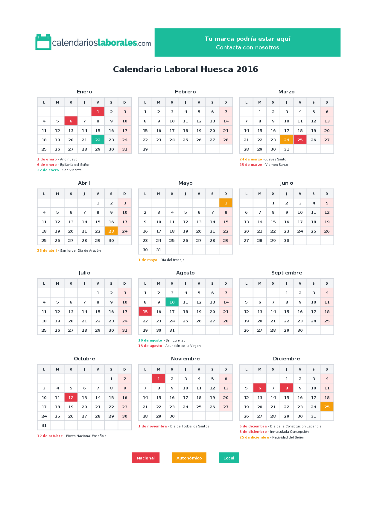 Puedes consultar también el calendario laboral completo de Aragón 2016 o el calendario laboral de España para conocer el detalle nacional.