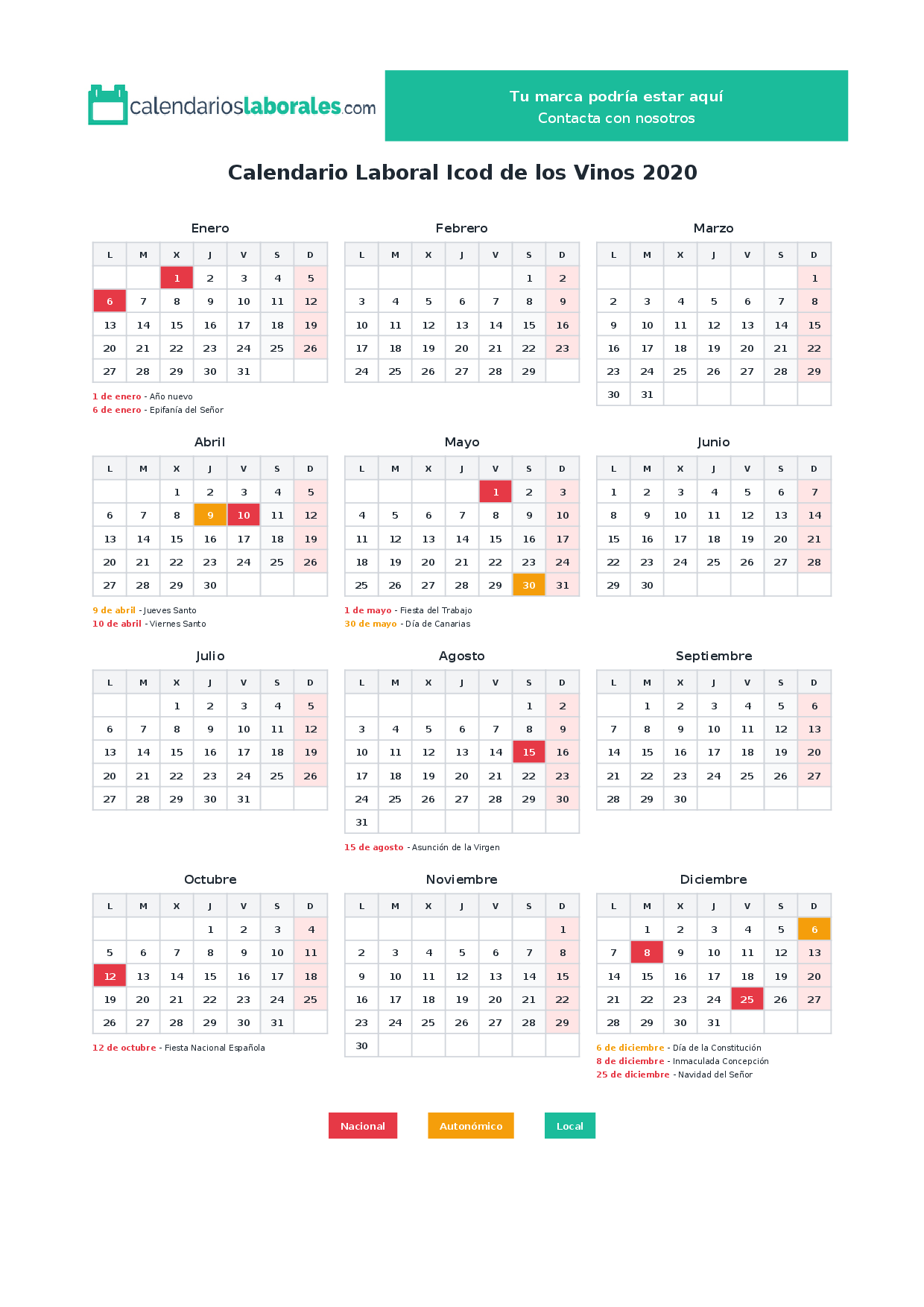 Calendario laboral Icod de los Vinos 2020