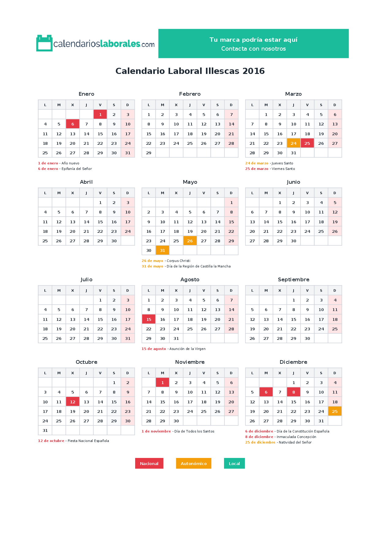 Calendario laboral Illescas 2016
