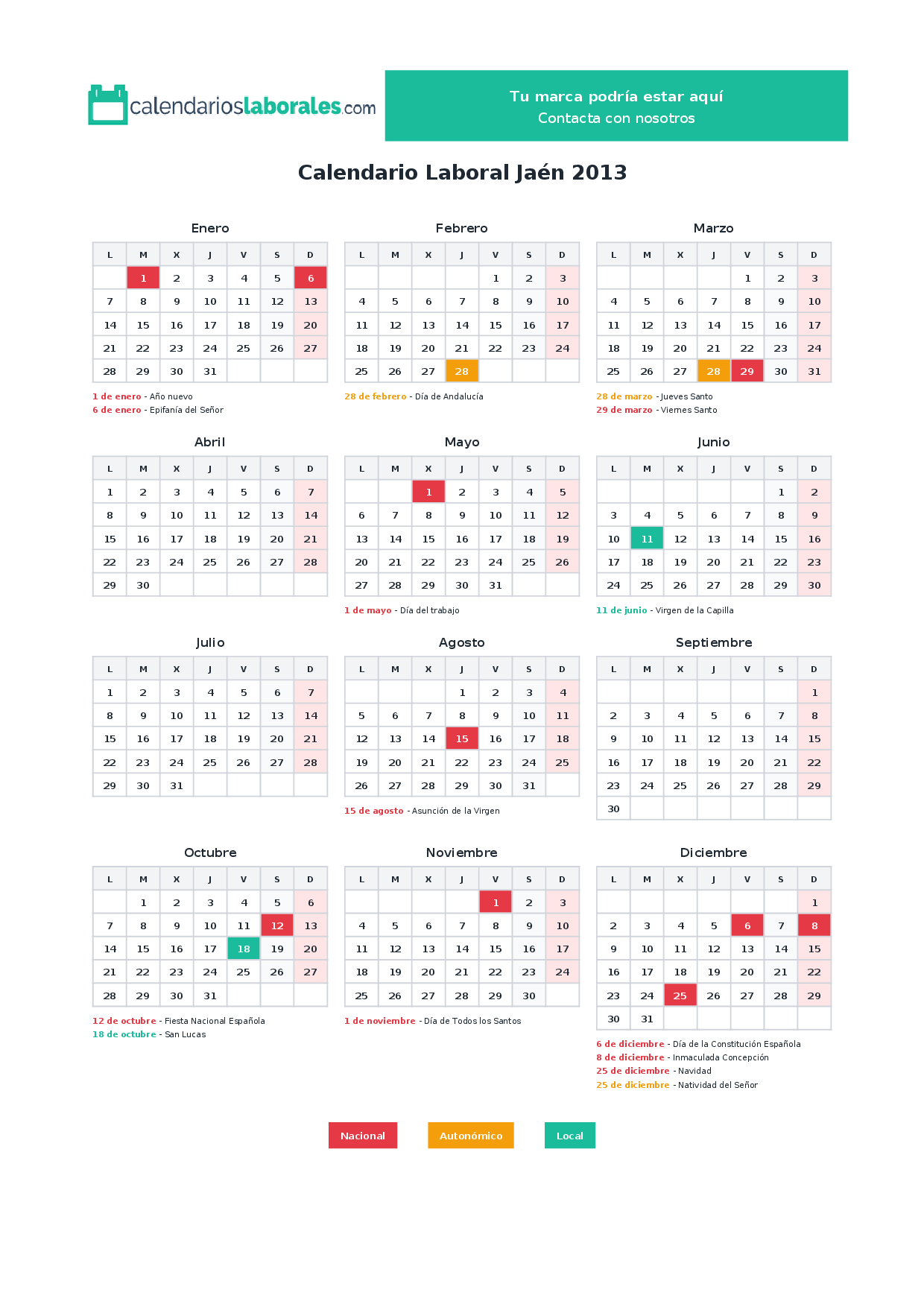 Calendario laboral Jaén 2013