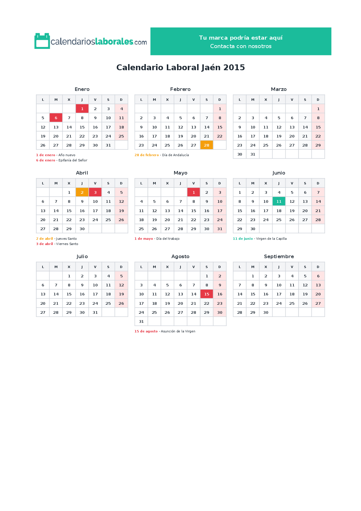 Calendario laboral Jaén 2015