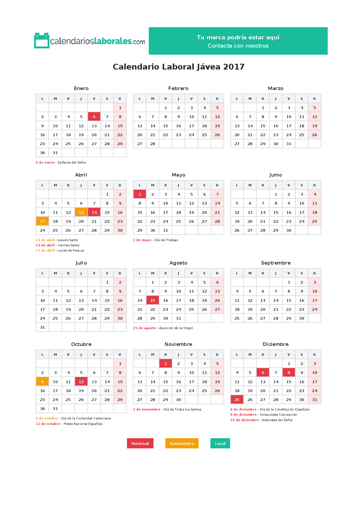 Calendario laboral Jávea 2017