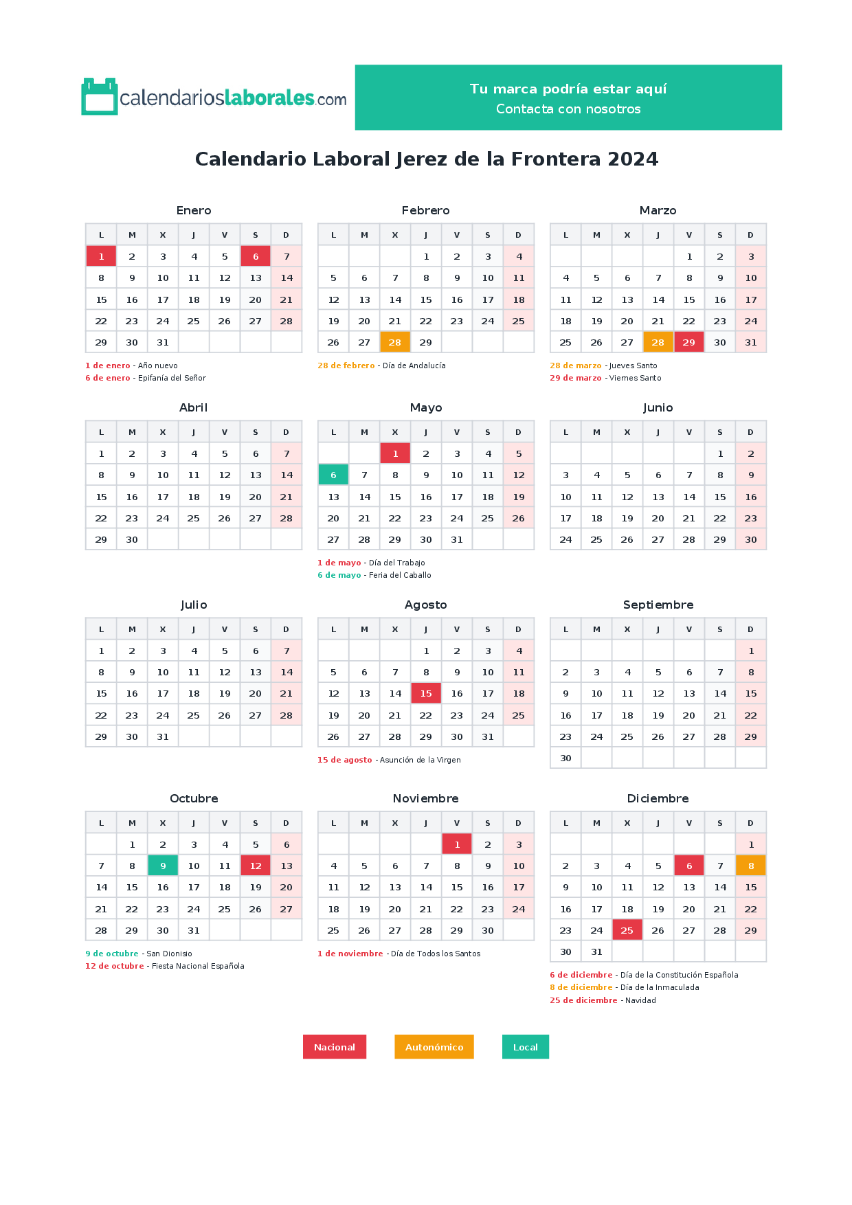 Calendario laboral Jerez de la Frontera 2024