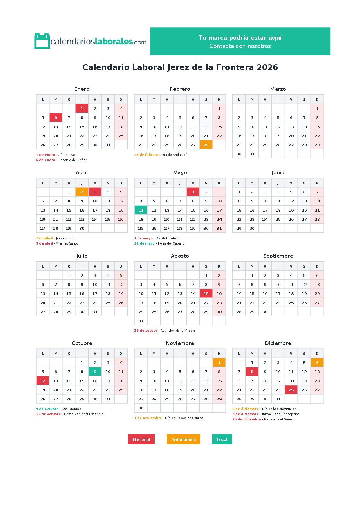 Calendario laboral Jerez de la Frontera 2026