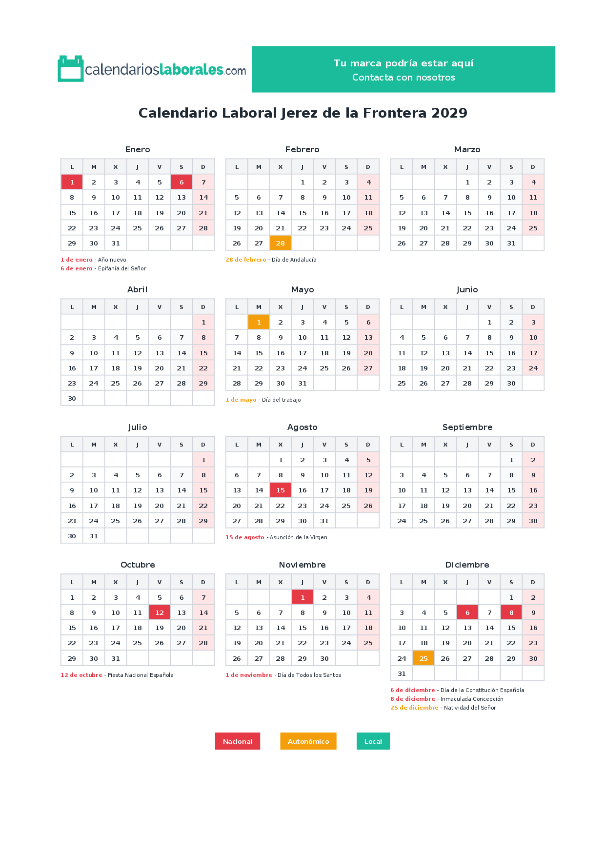Calendario laboral Jerez de la Frontera 2029