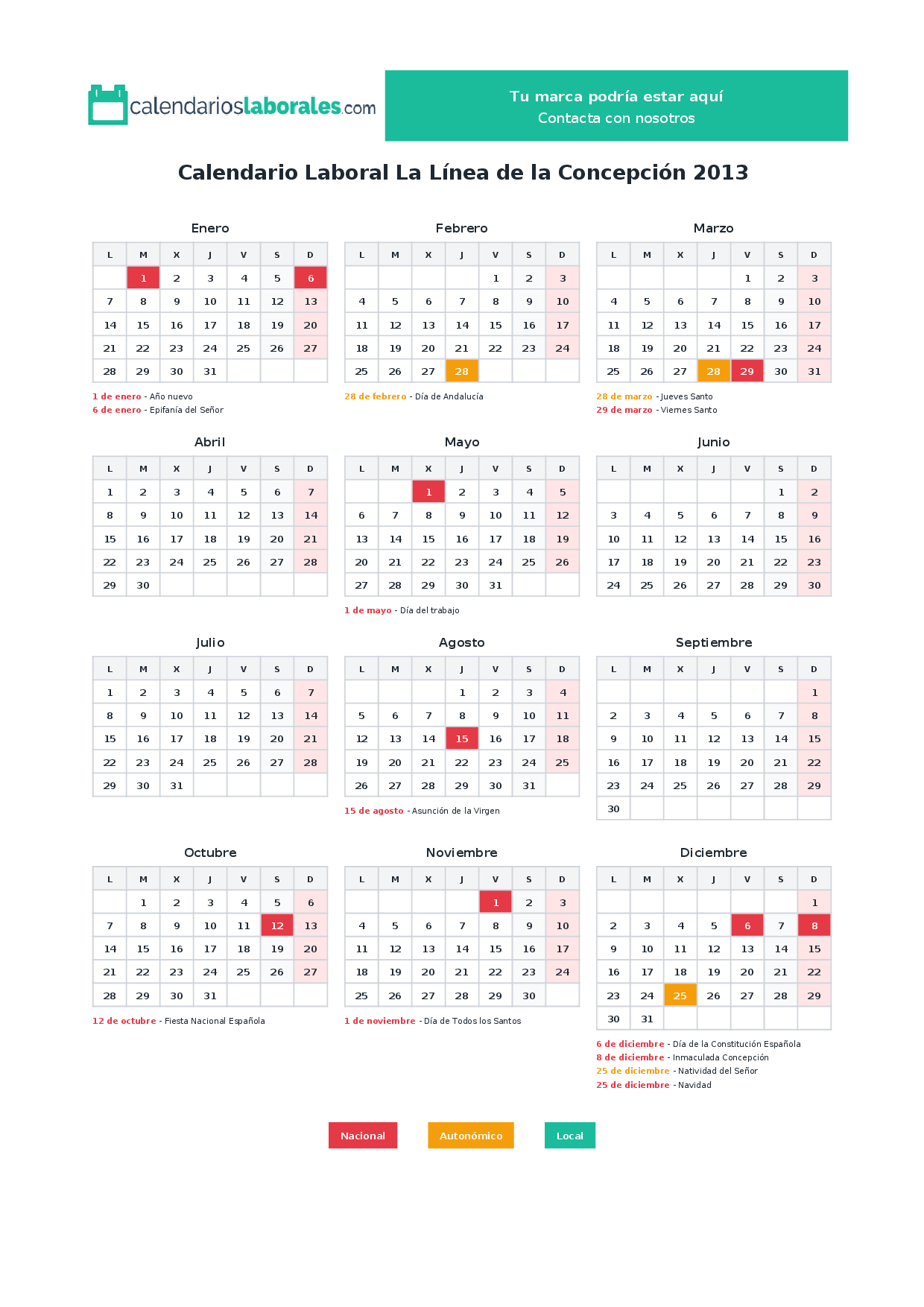 Calendario laboral La Línea de la Concepción 2013